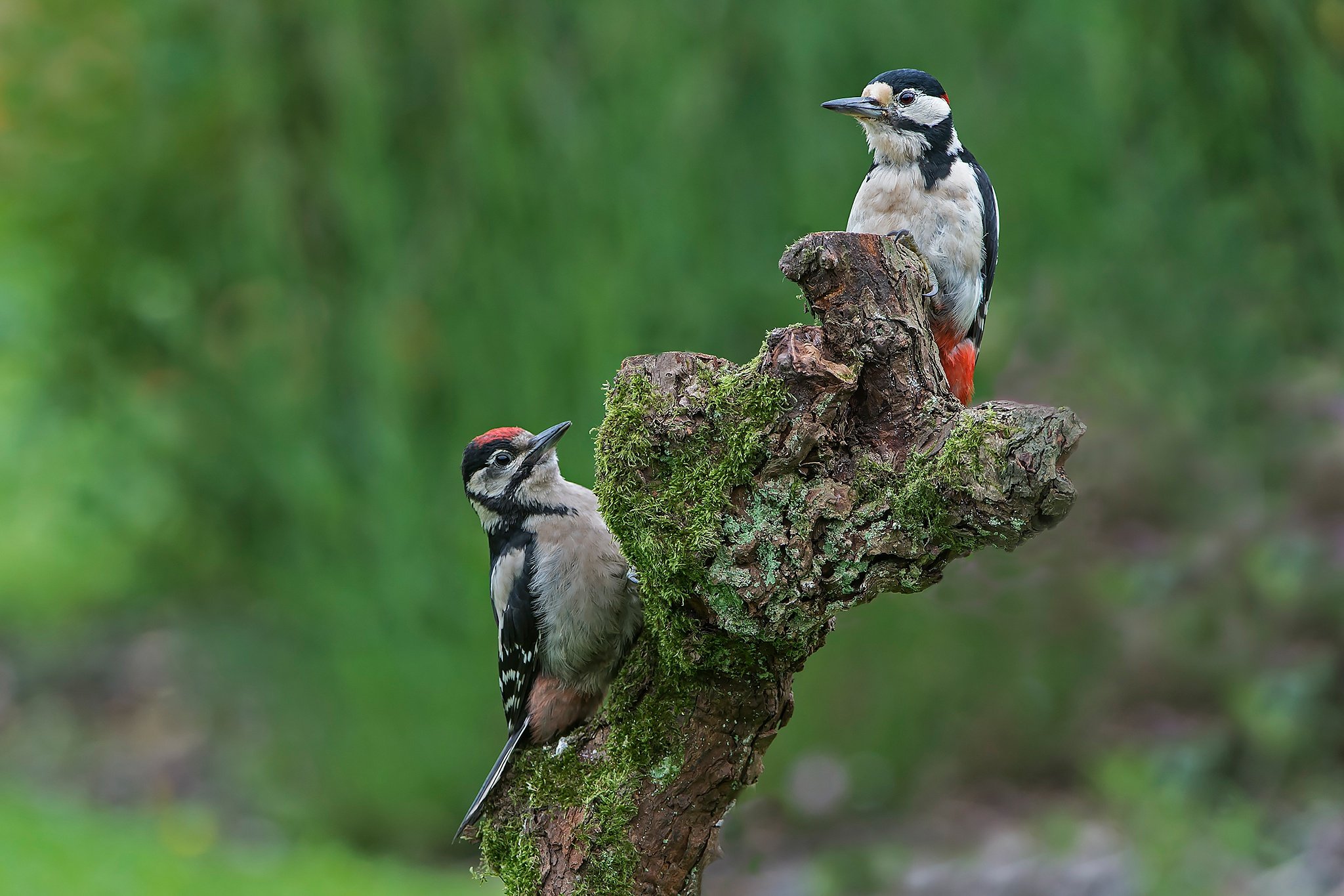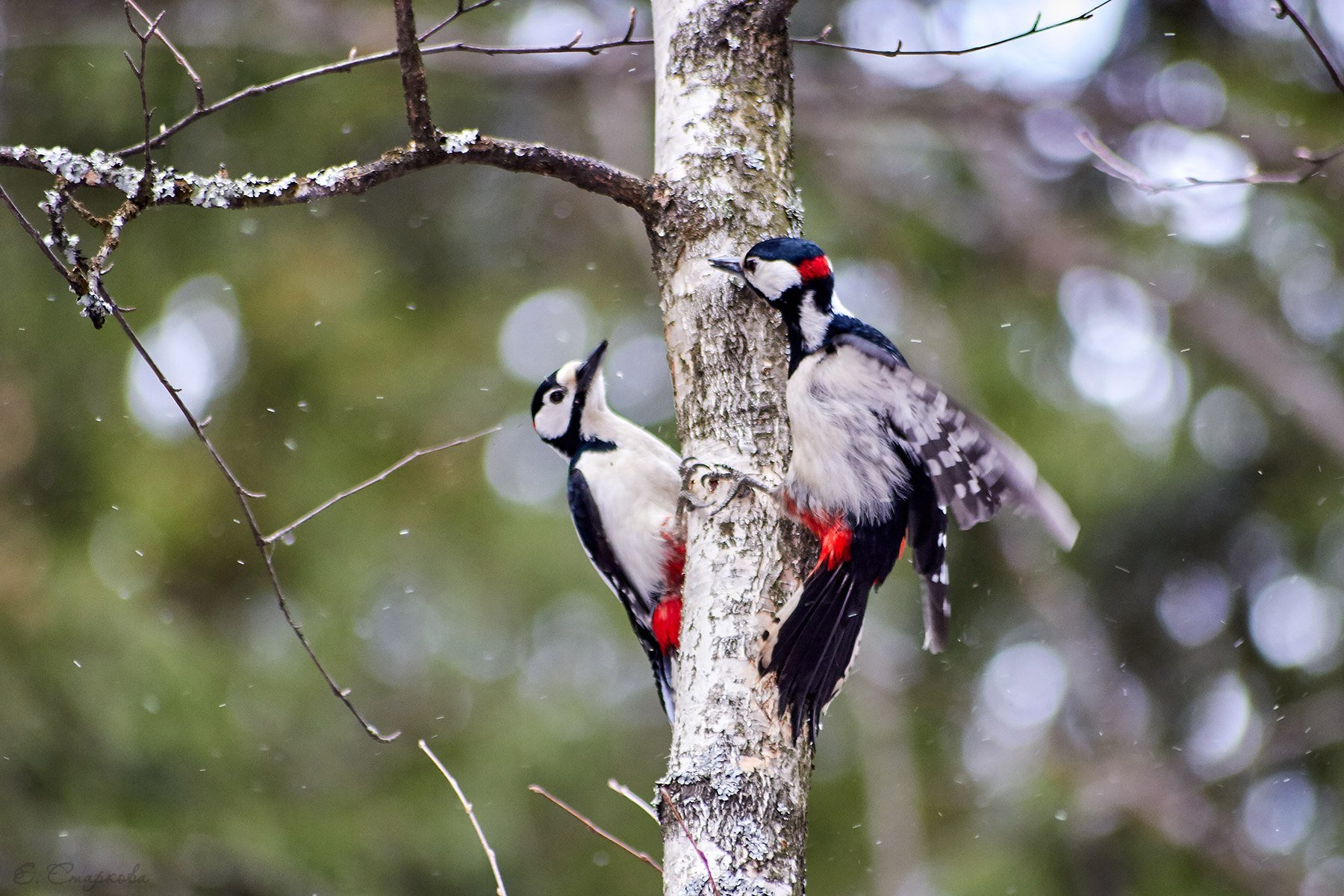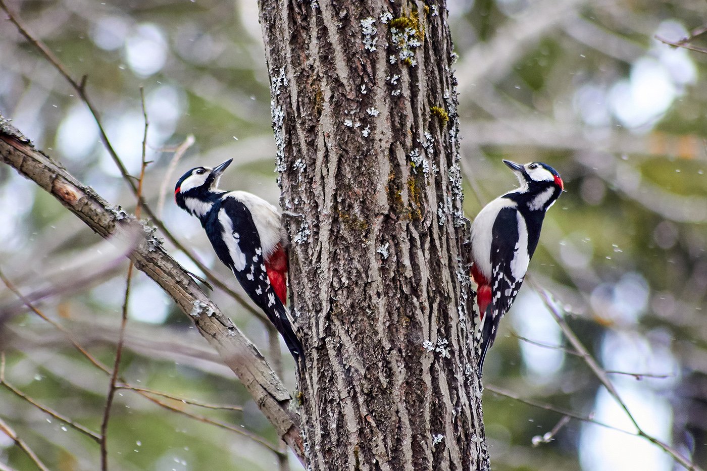 Большой пестрый дятел самец и самка