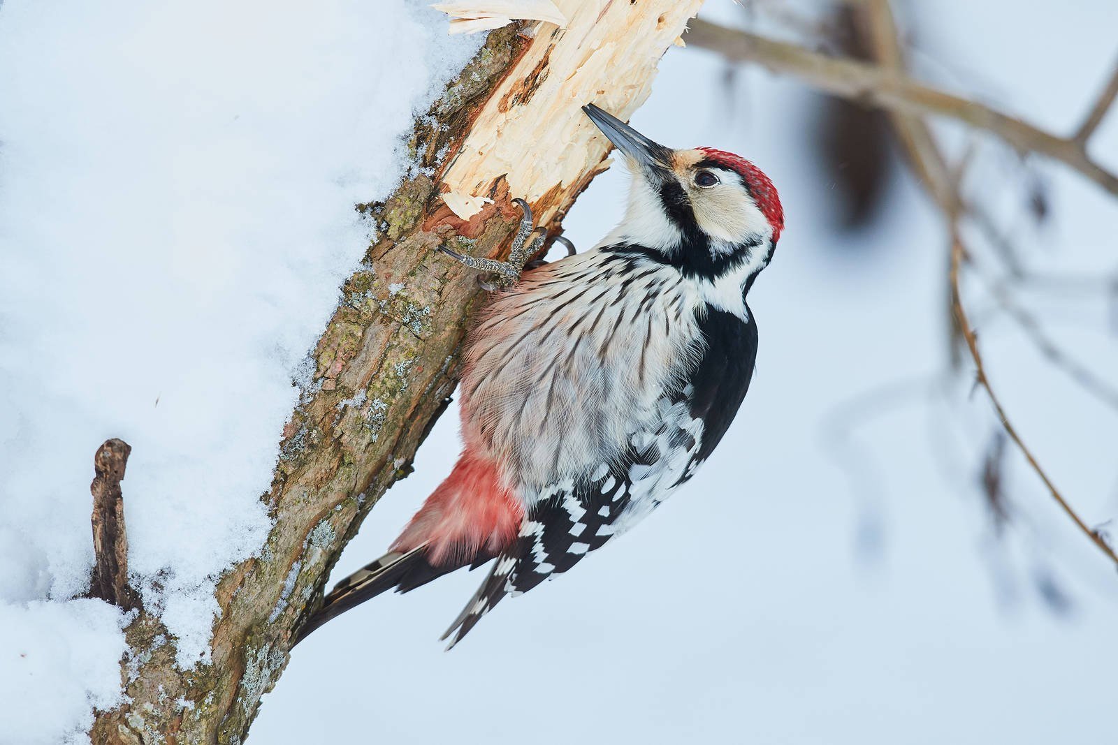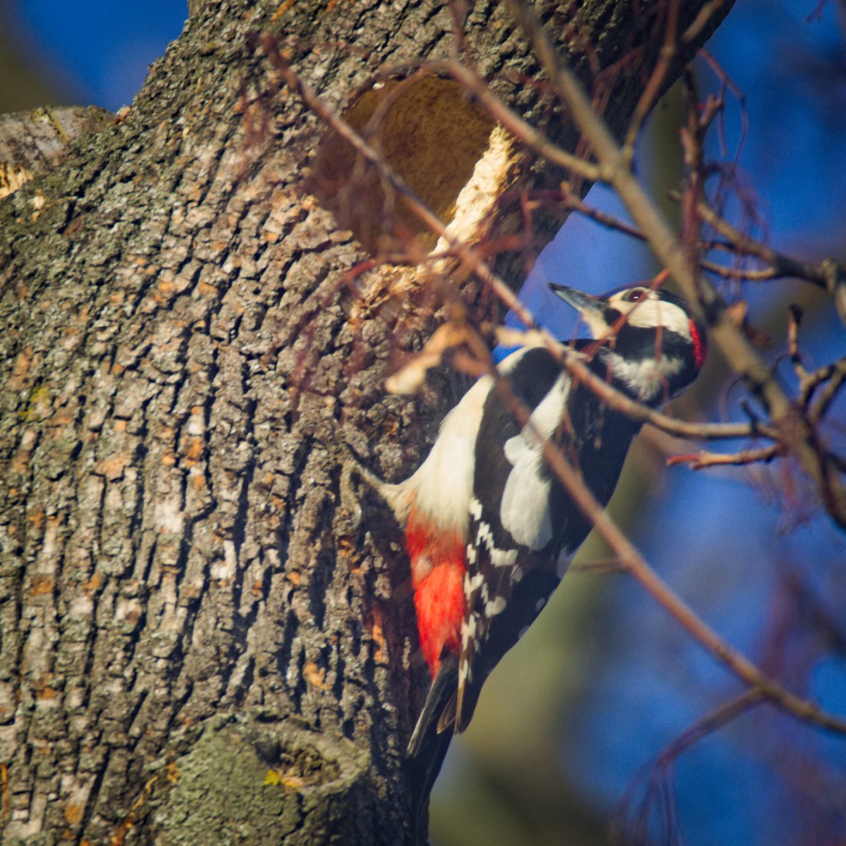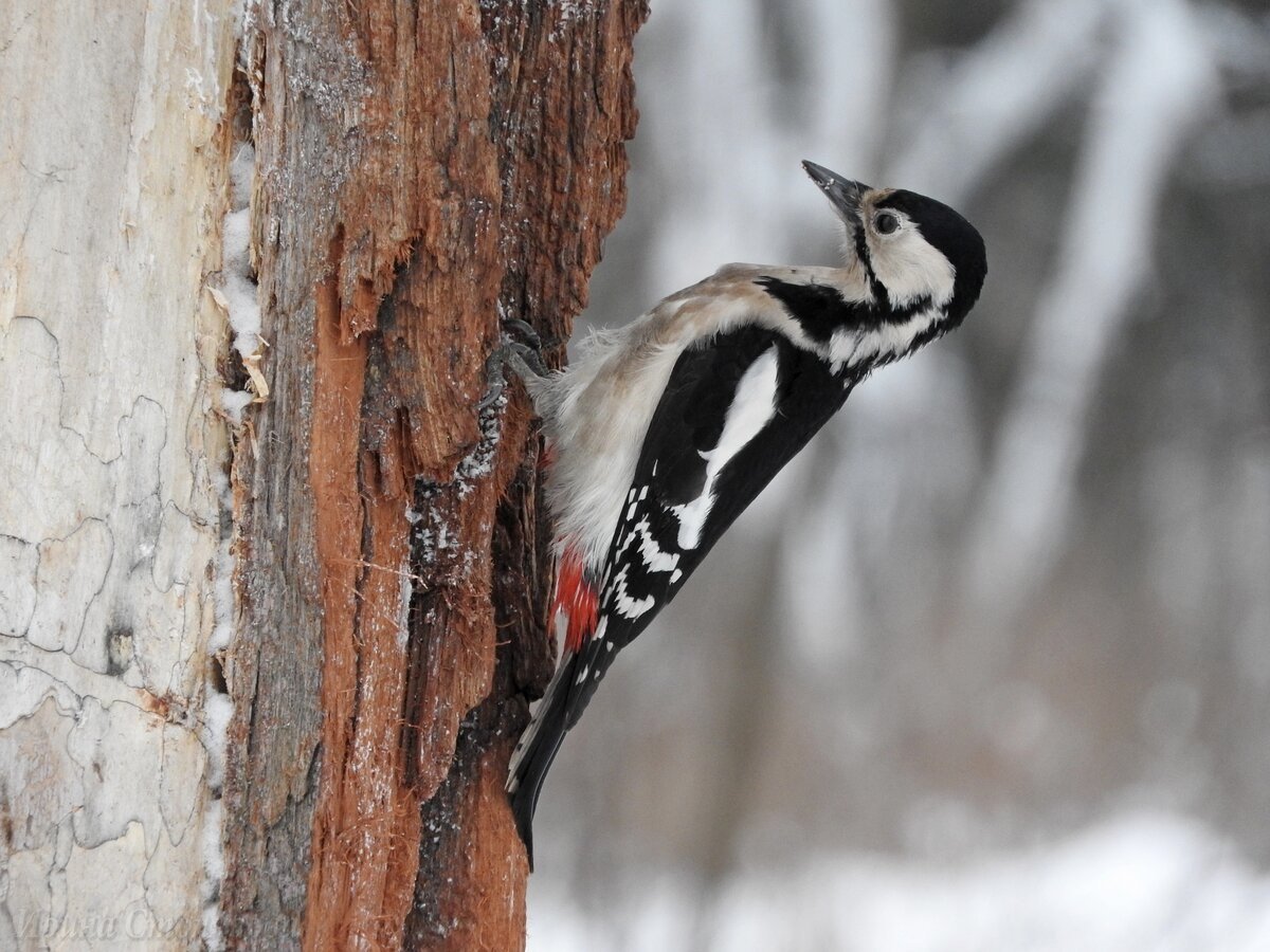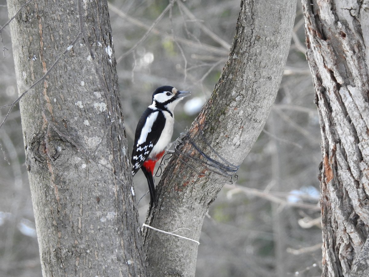 Большой пёстрый дятел зимой