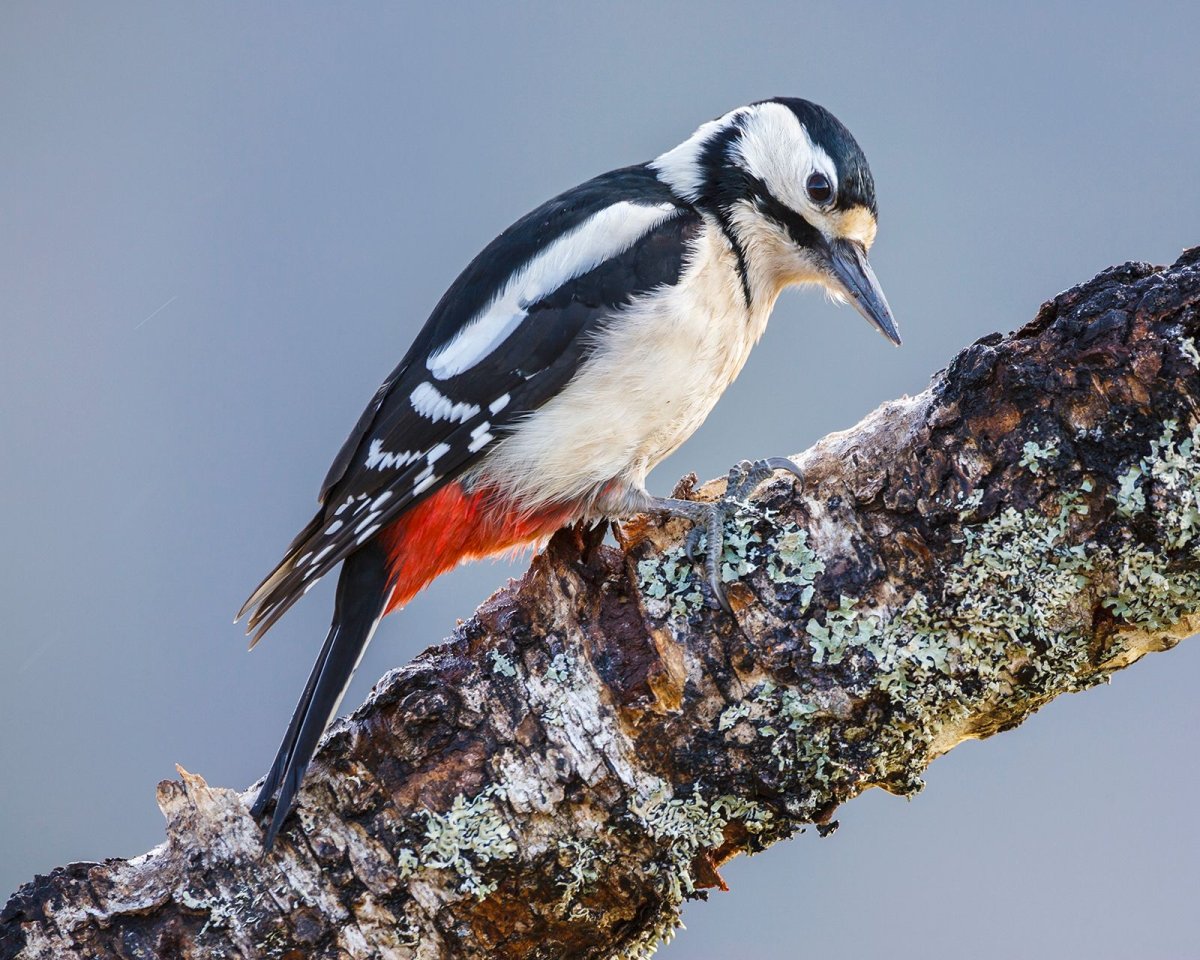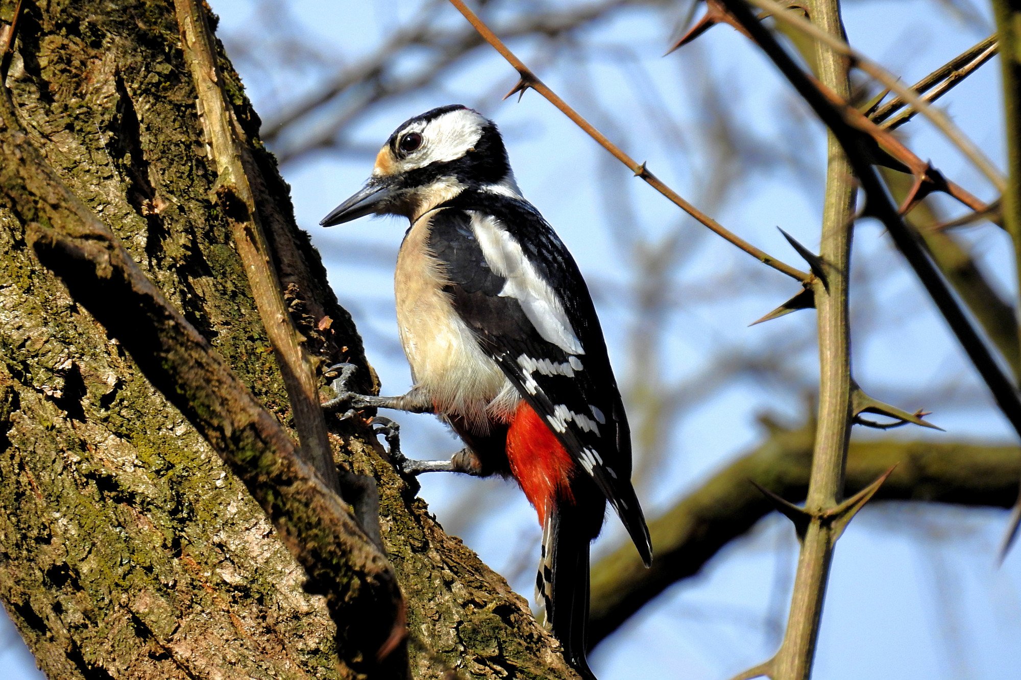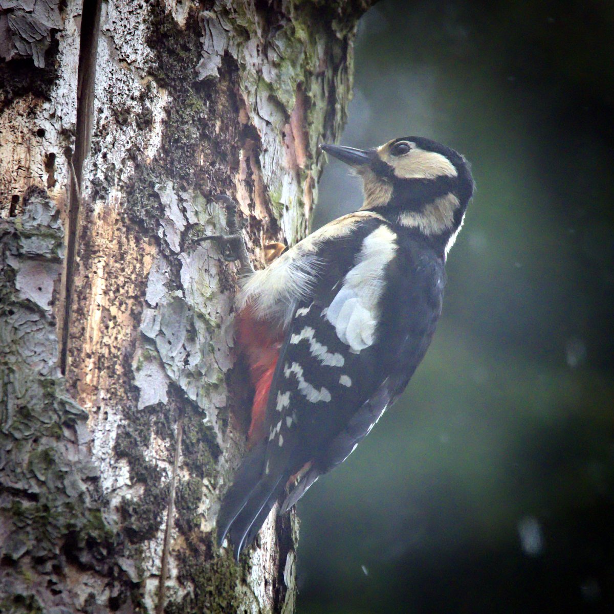 Большой пёстрый дятел зимой