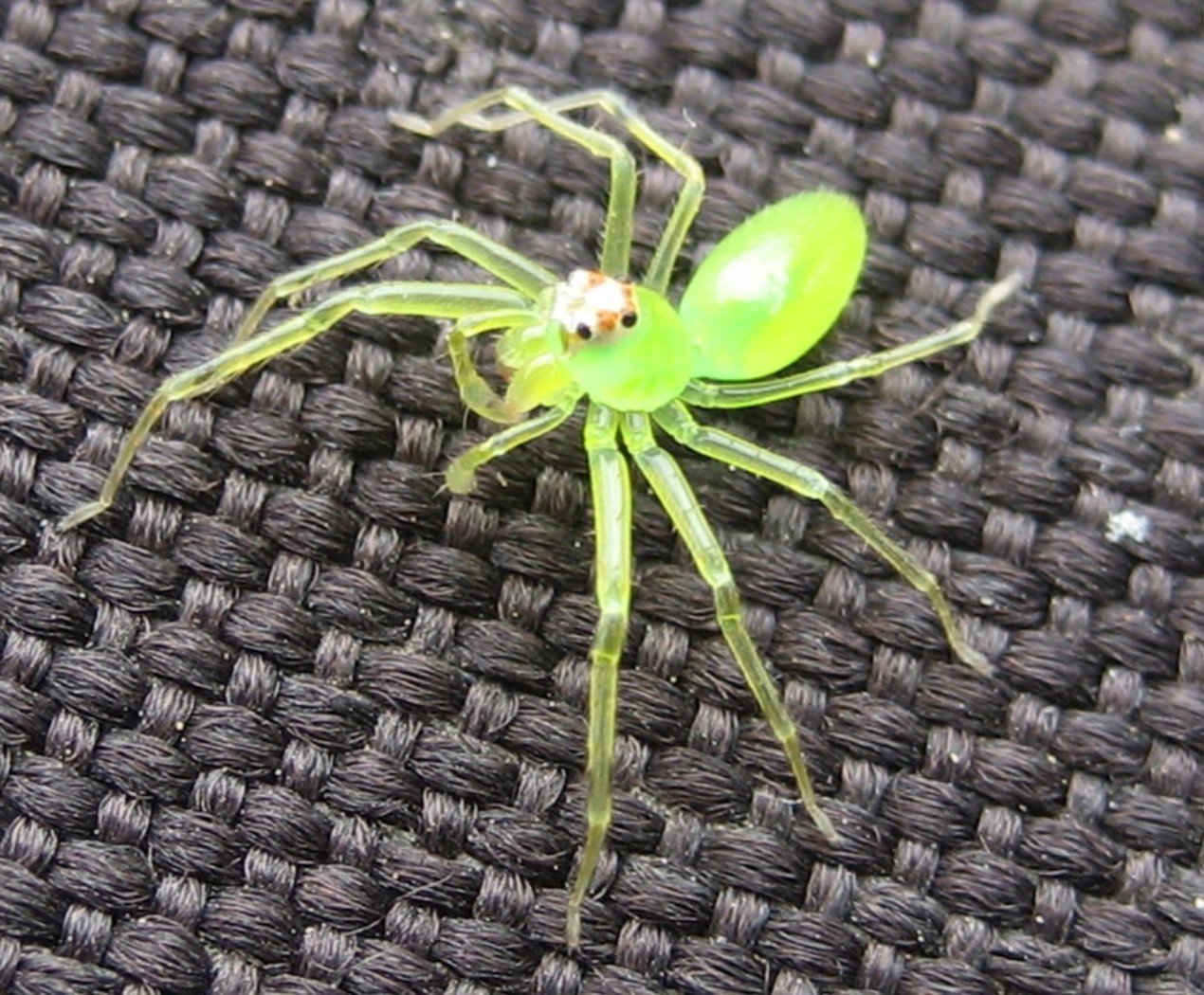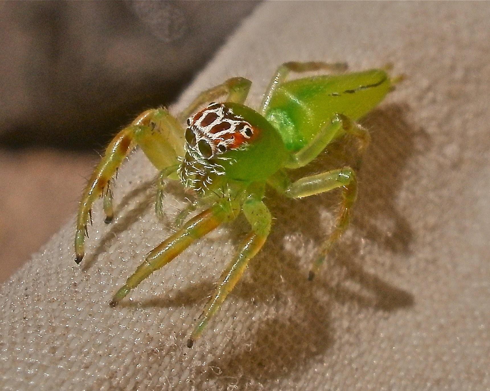 Зеленый паук с длинными передними лапами