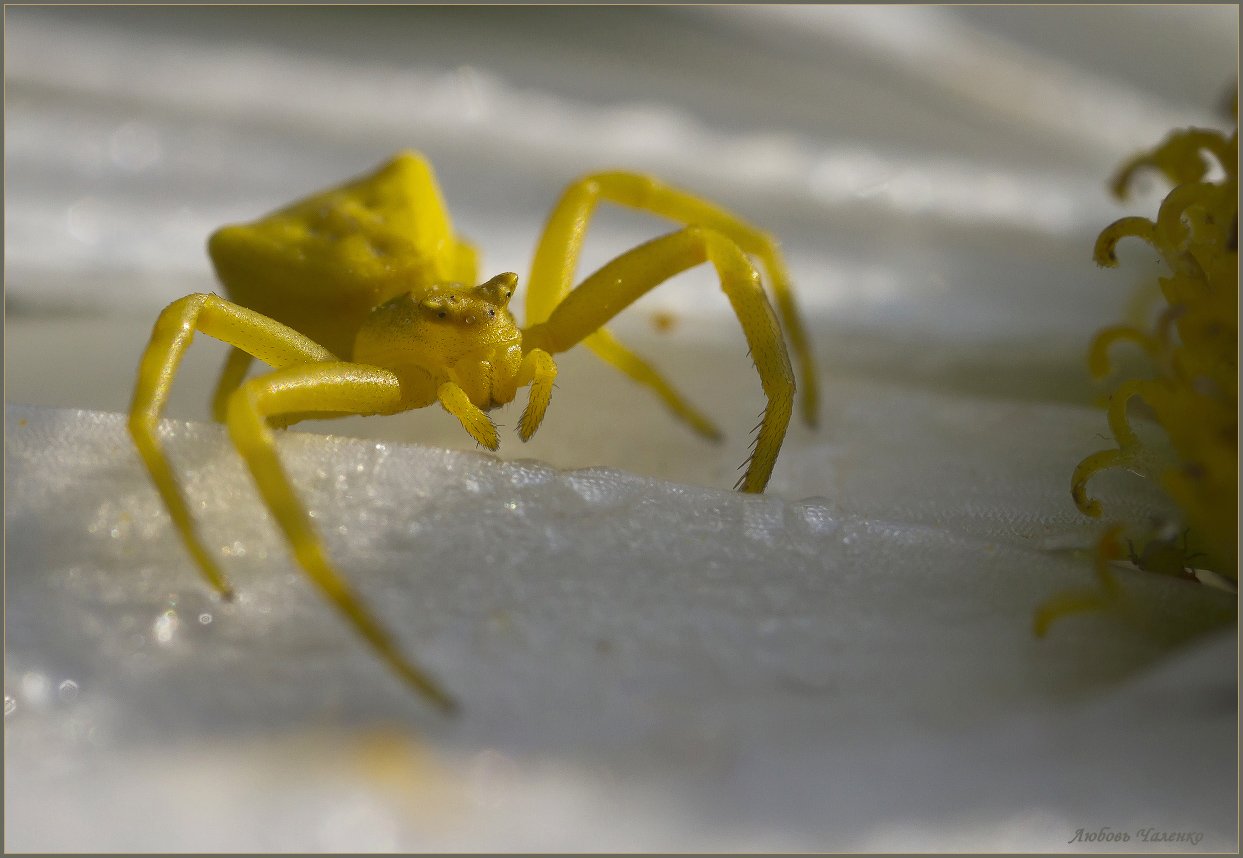 Желтый цветочный паук-бокоход