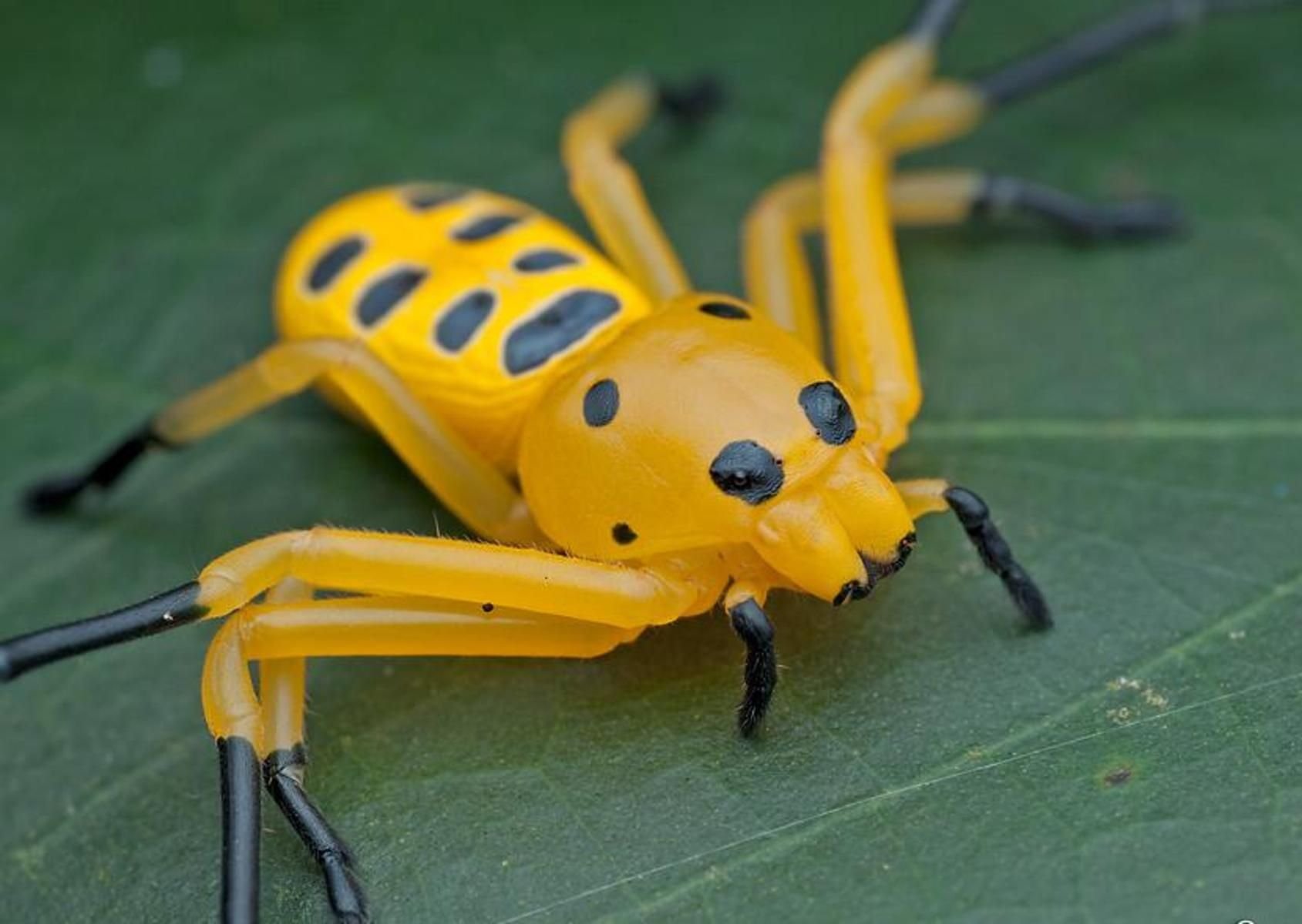 Желтый паук с красными полосками