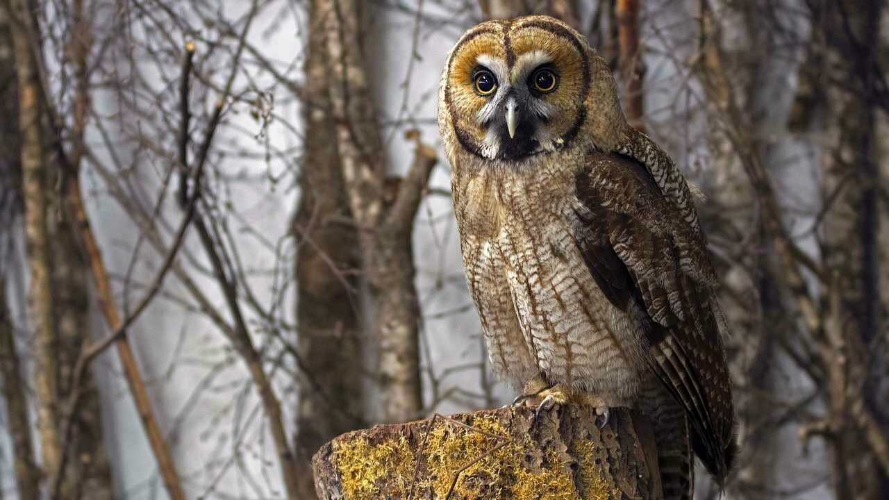 Птица бородатая неясыть