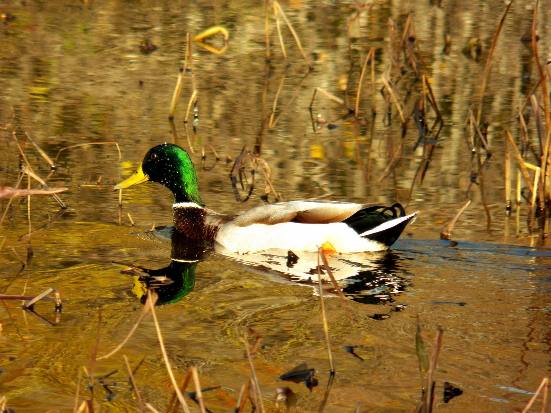 Селезень кряквы осенью