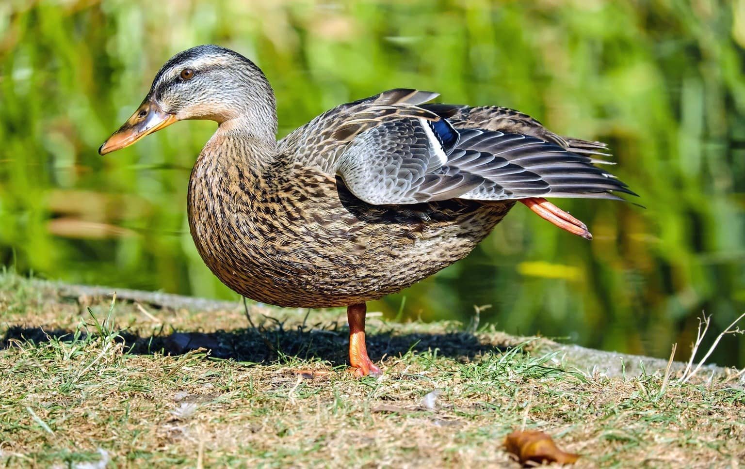 Утка кряква в пруду