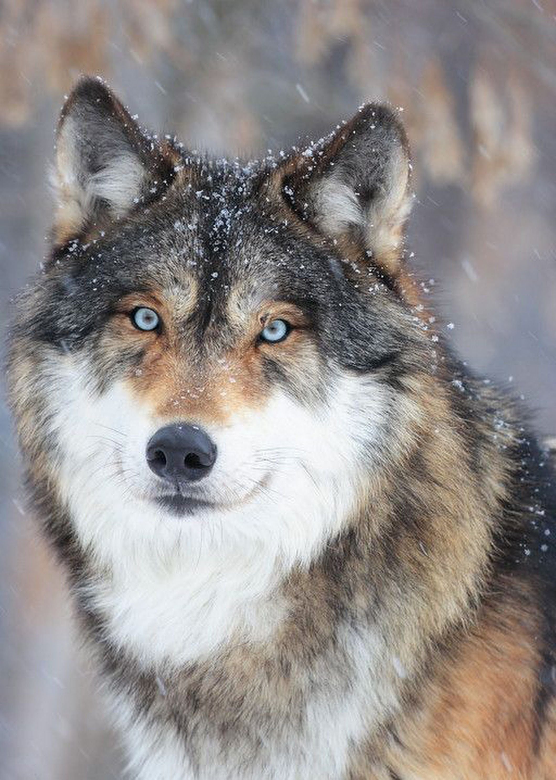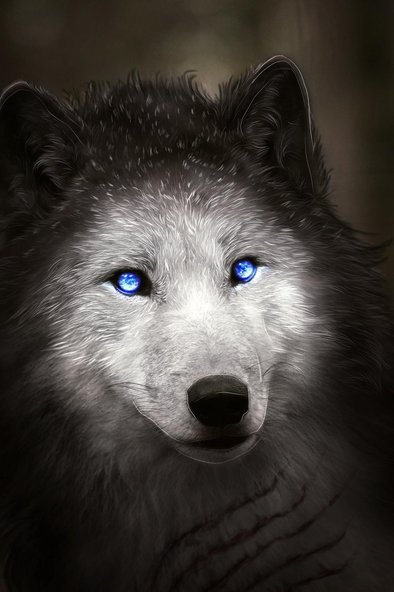 Морда волка с голубыми глазами
