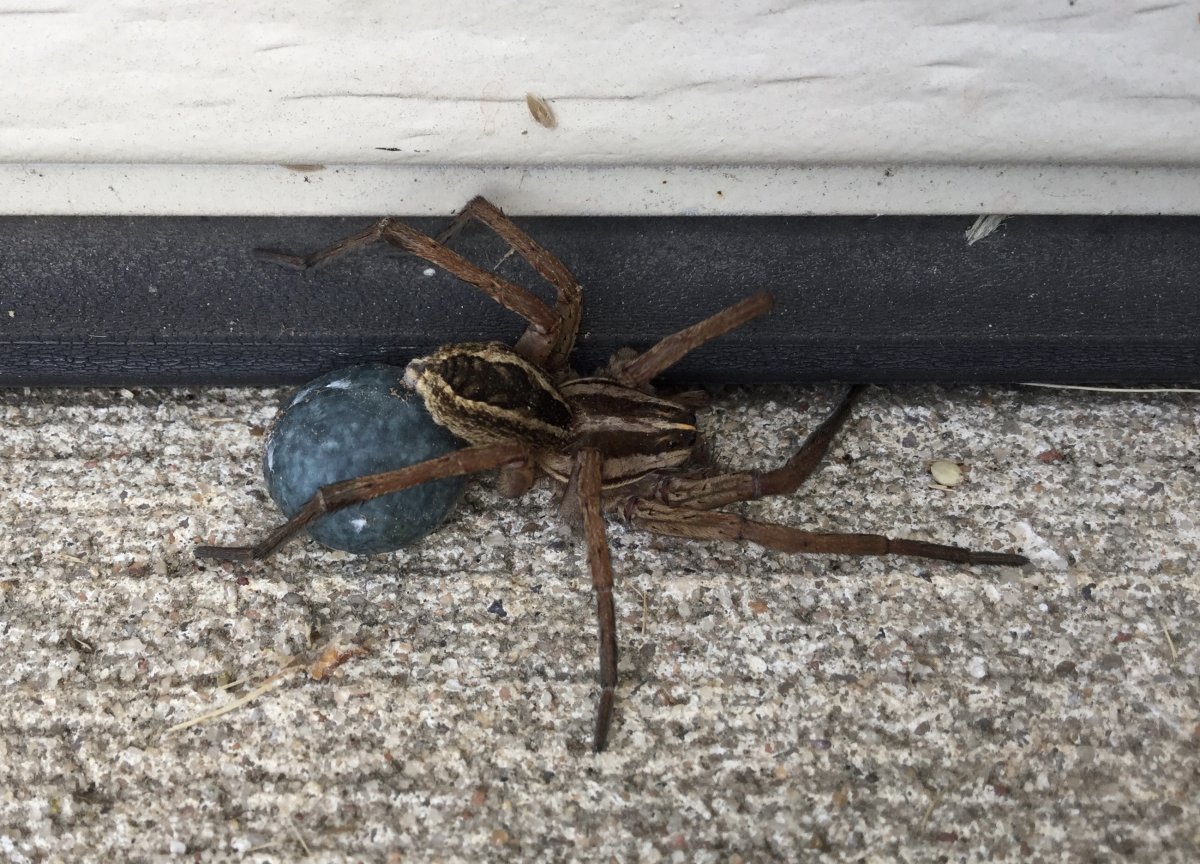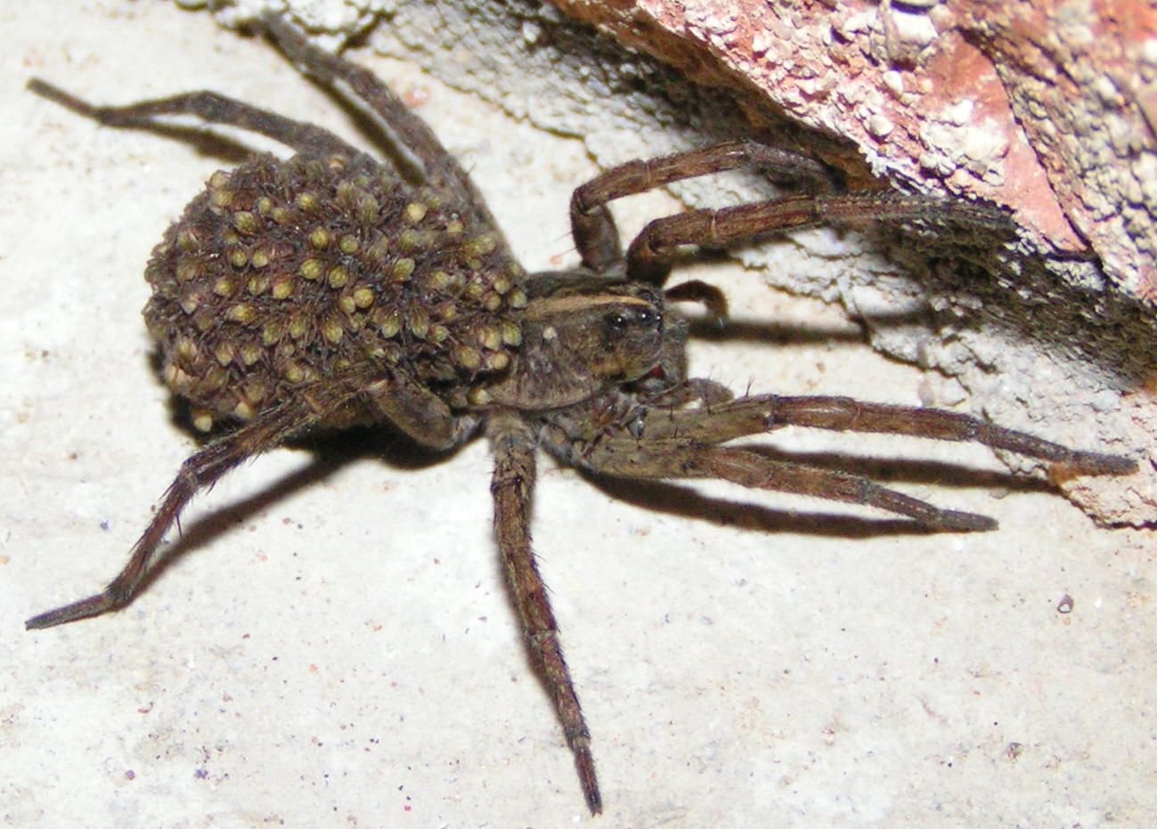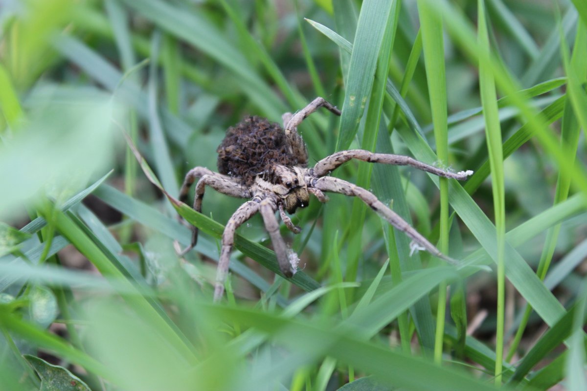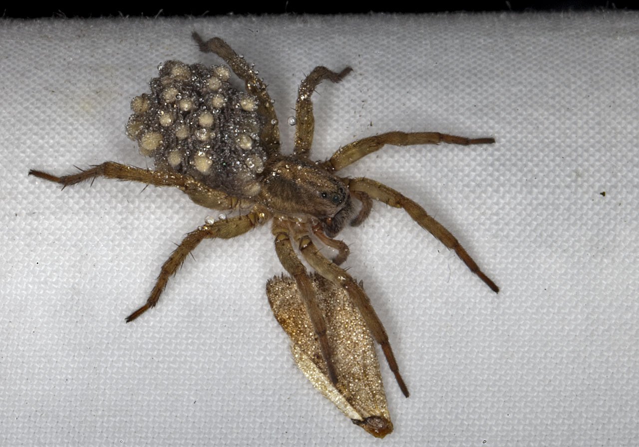 Паук волк самка с коконом