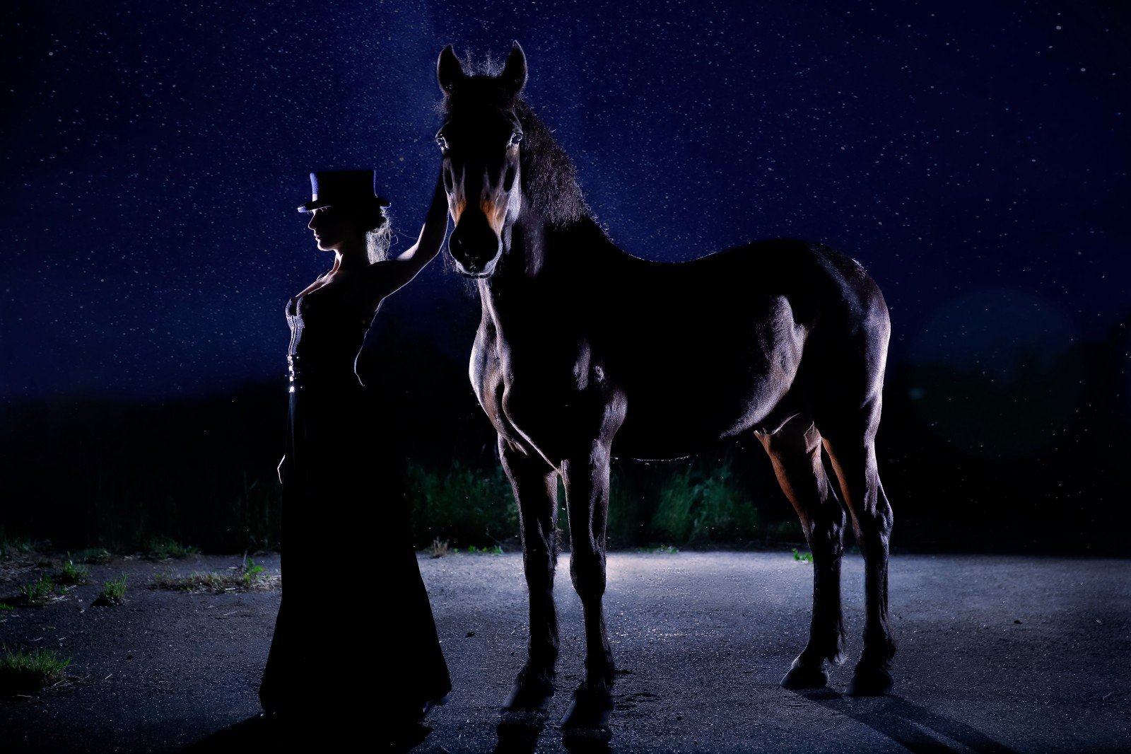 Черный конь ночью
