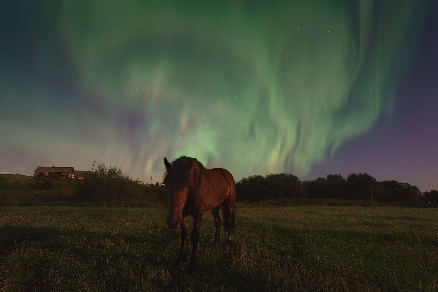Лошадь и Северное сияние