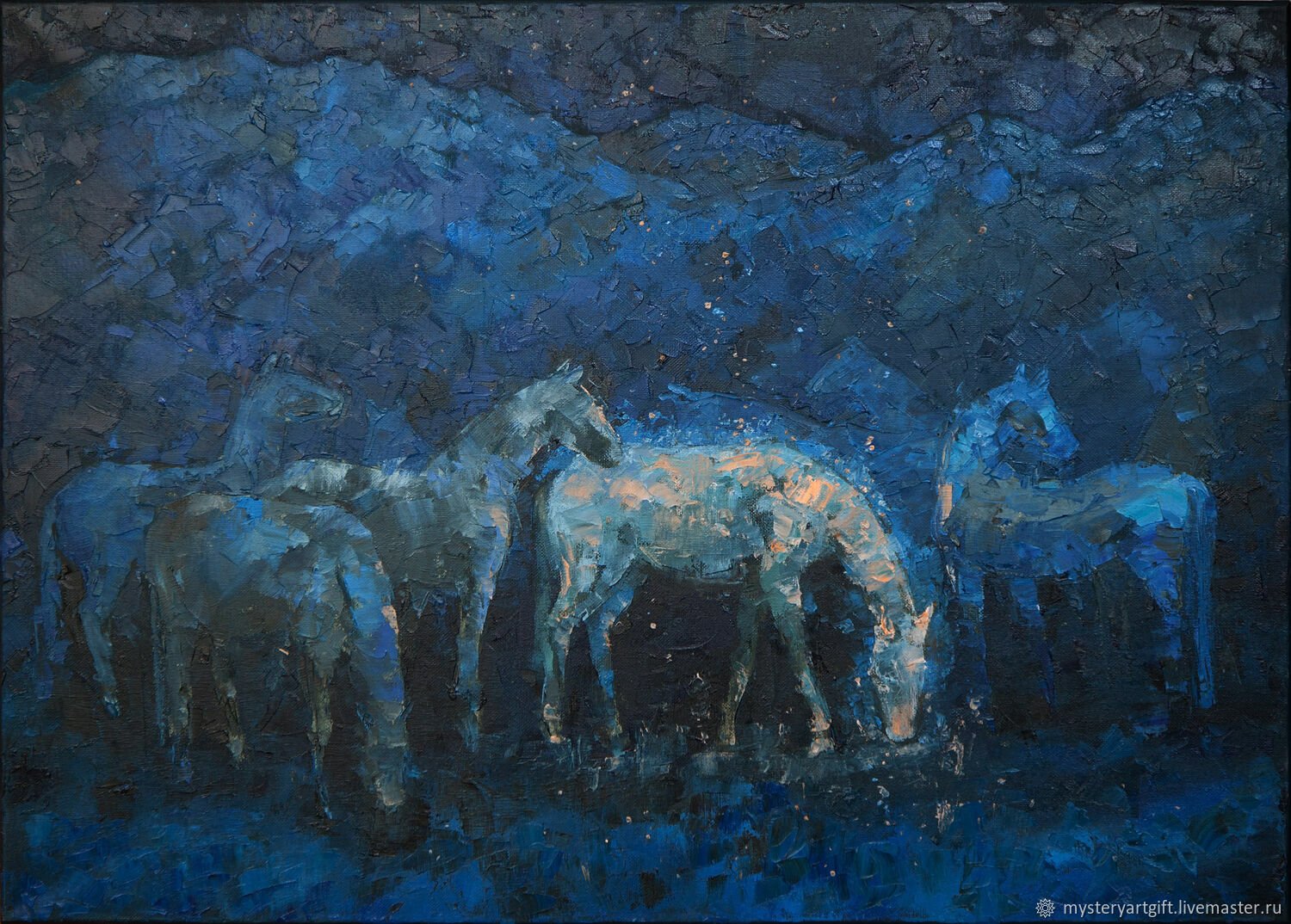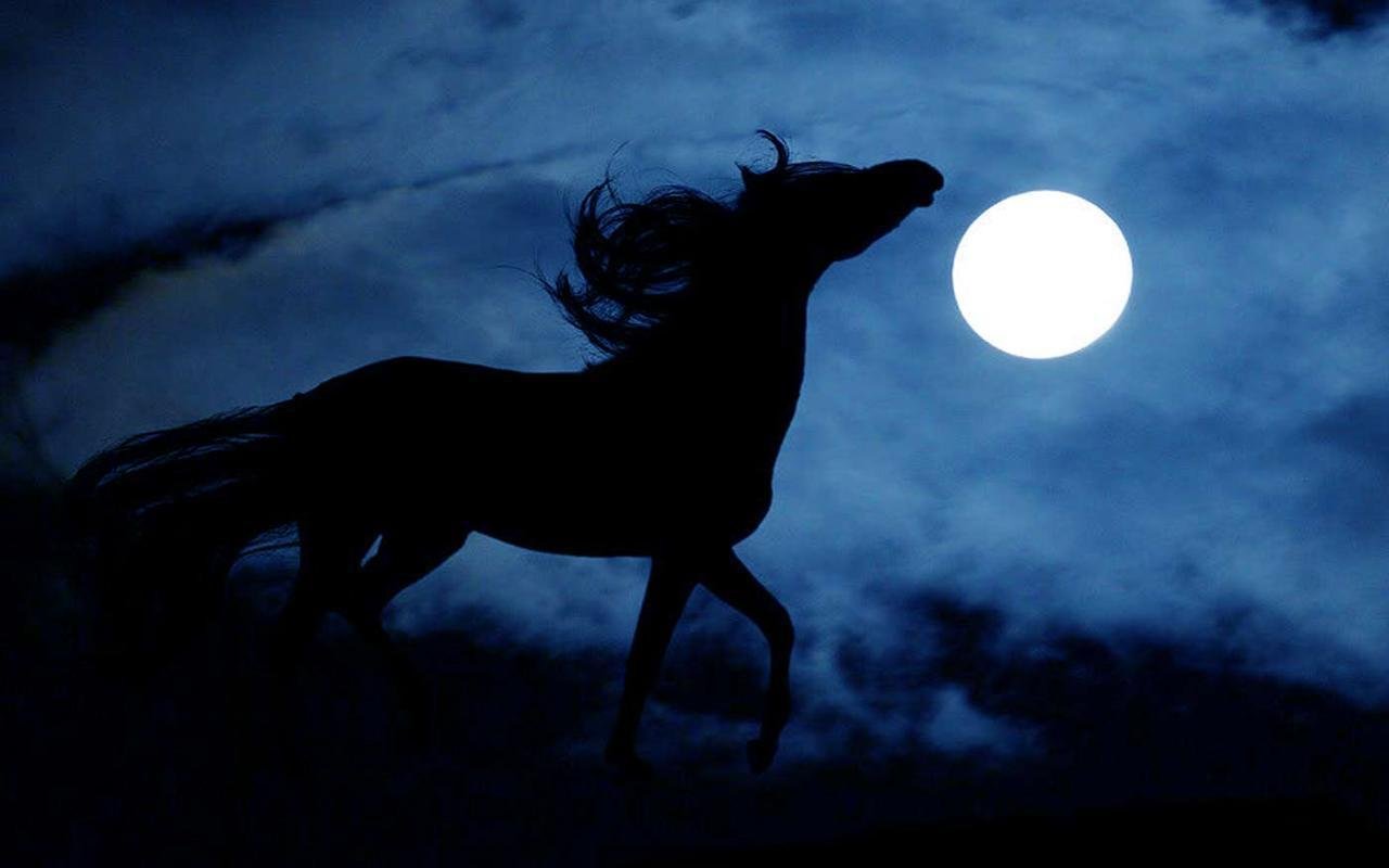 Лошадь ночью арт