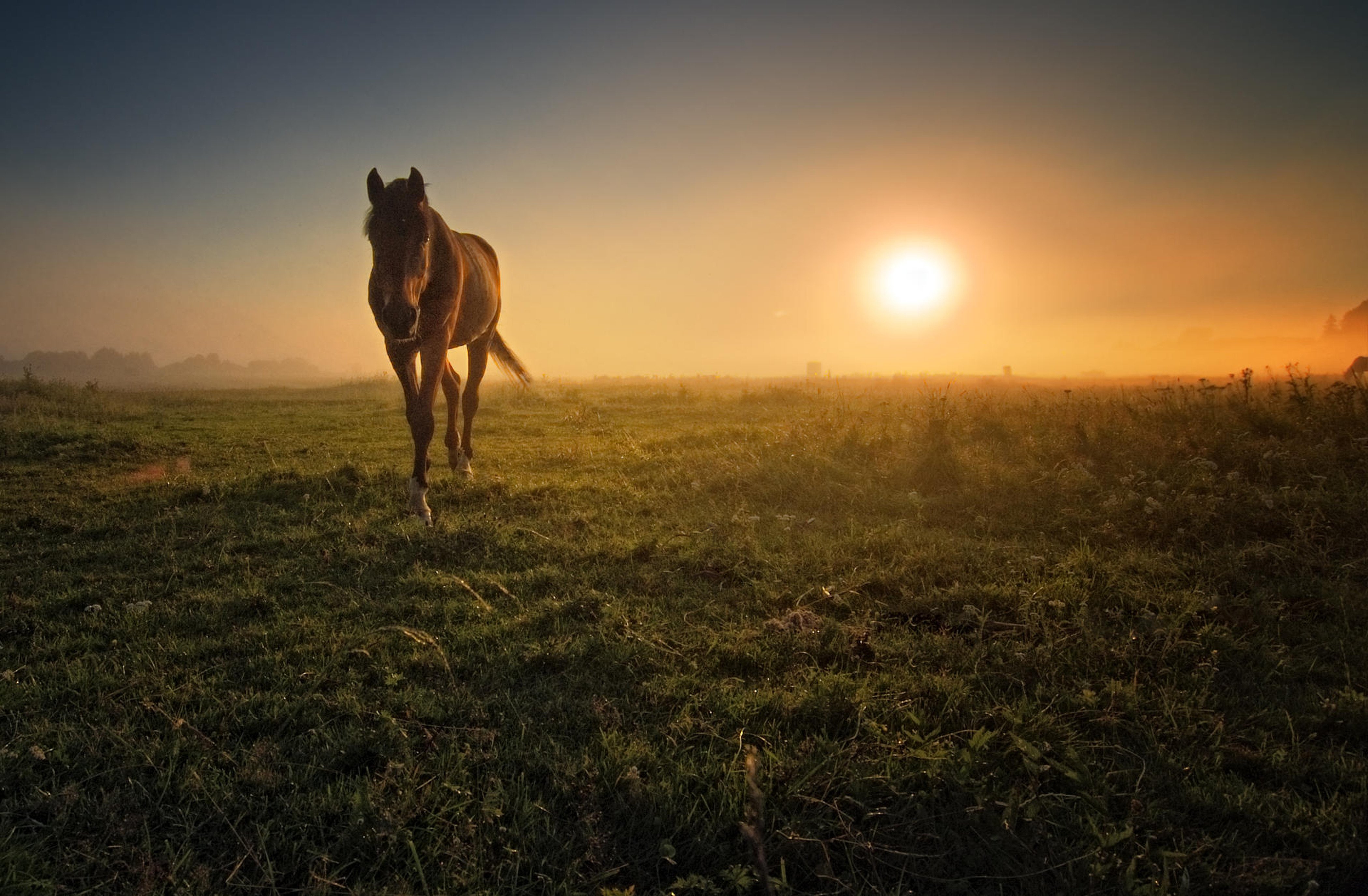 Лошадь в поле на закате