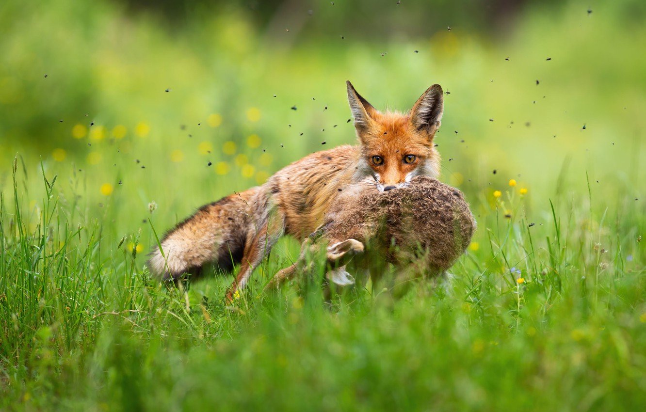 Лиса с добычей
