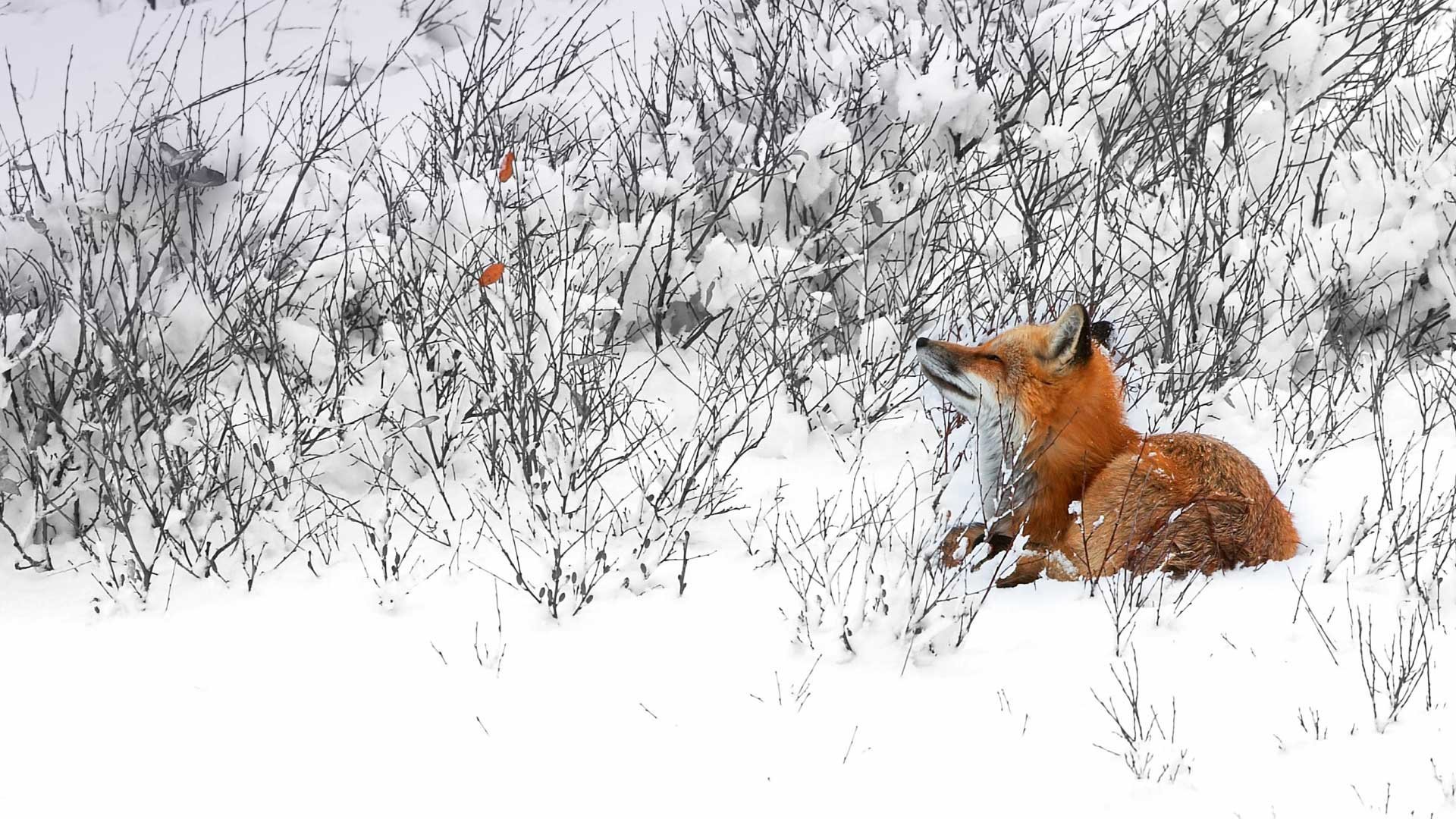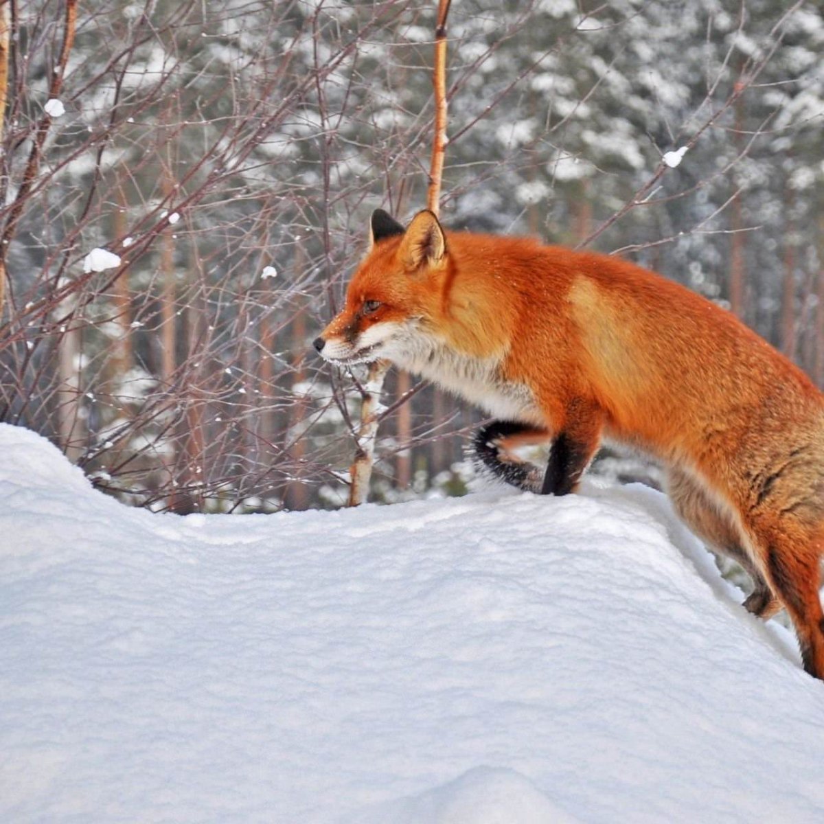 Лиса зимой в лесу