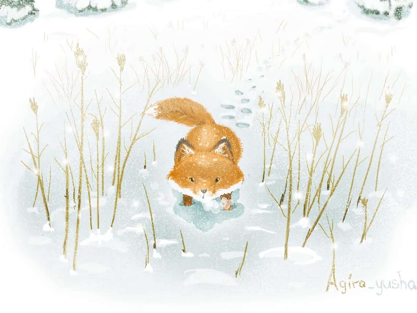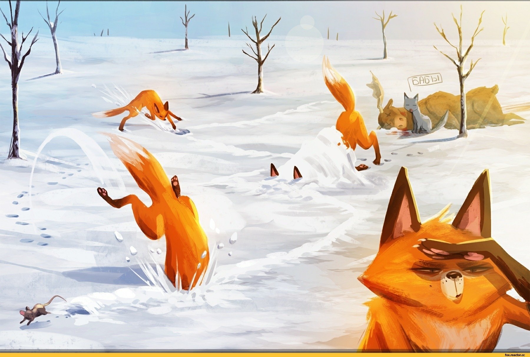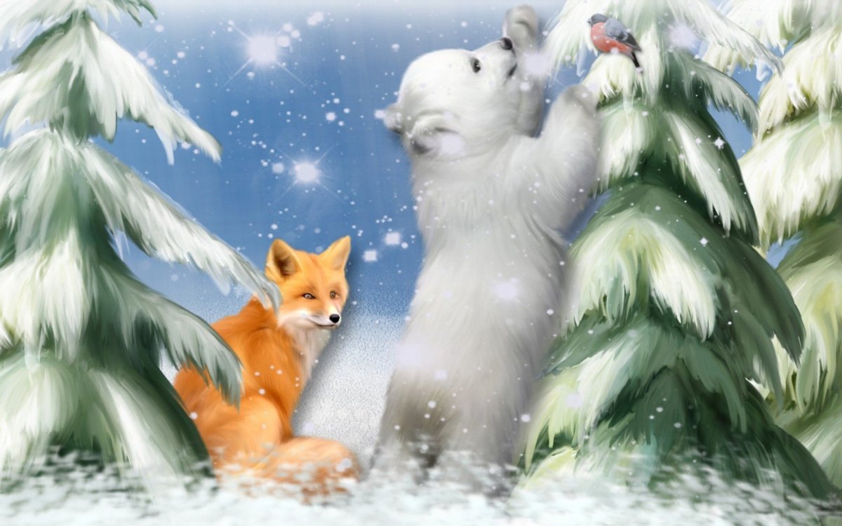 Лиса зима арт