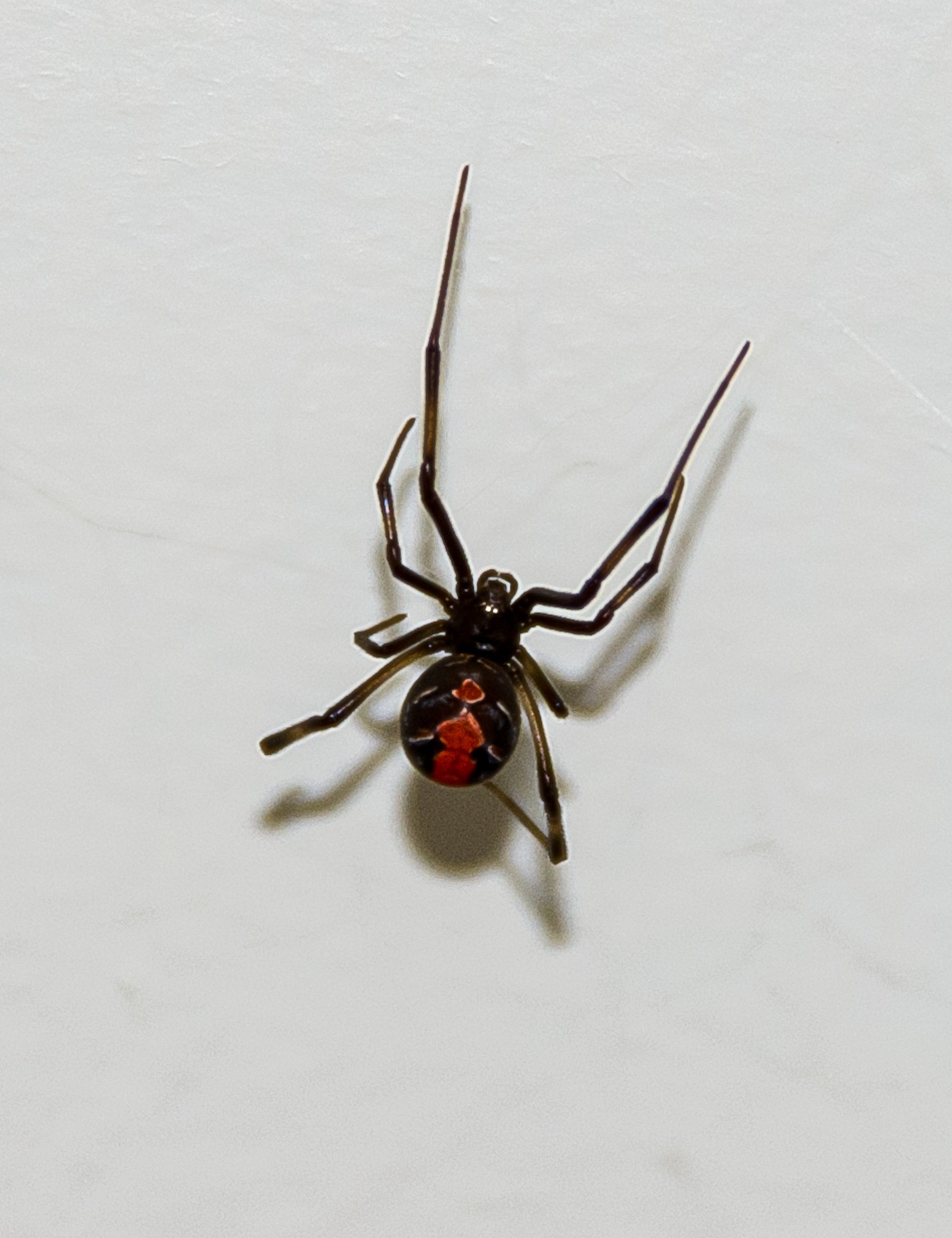 Паук на чёрном брюшке красное пятно