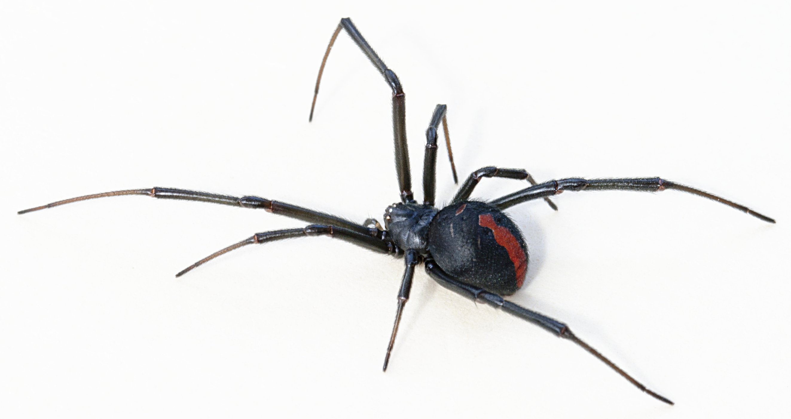 Черный паук с красной полосой на спине