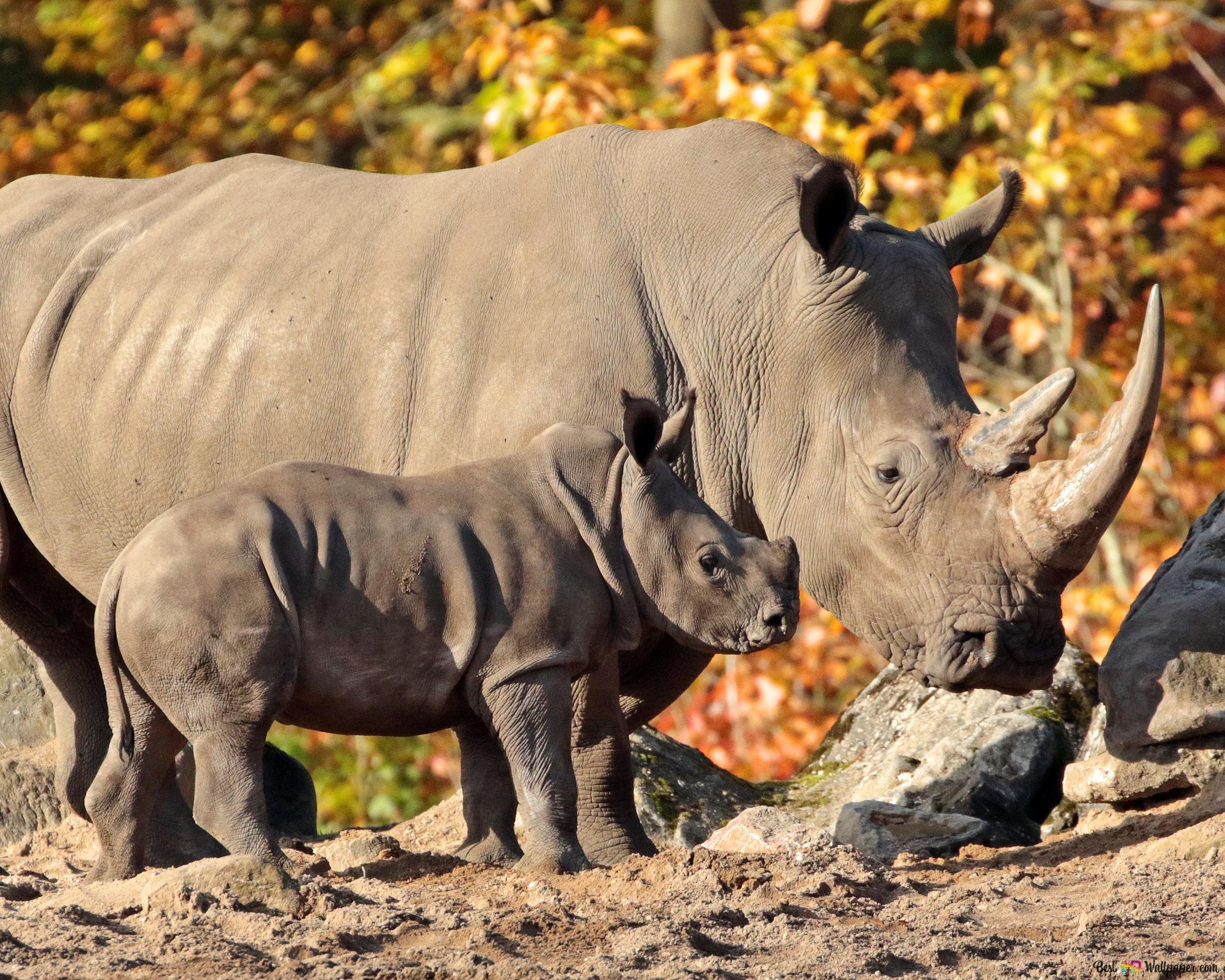 Белый носорог с детенышем