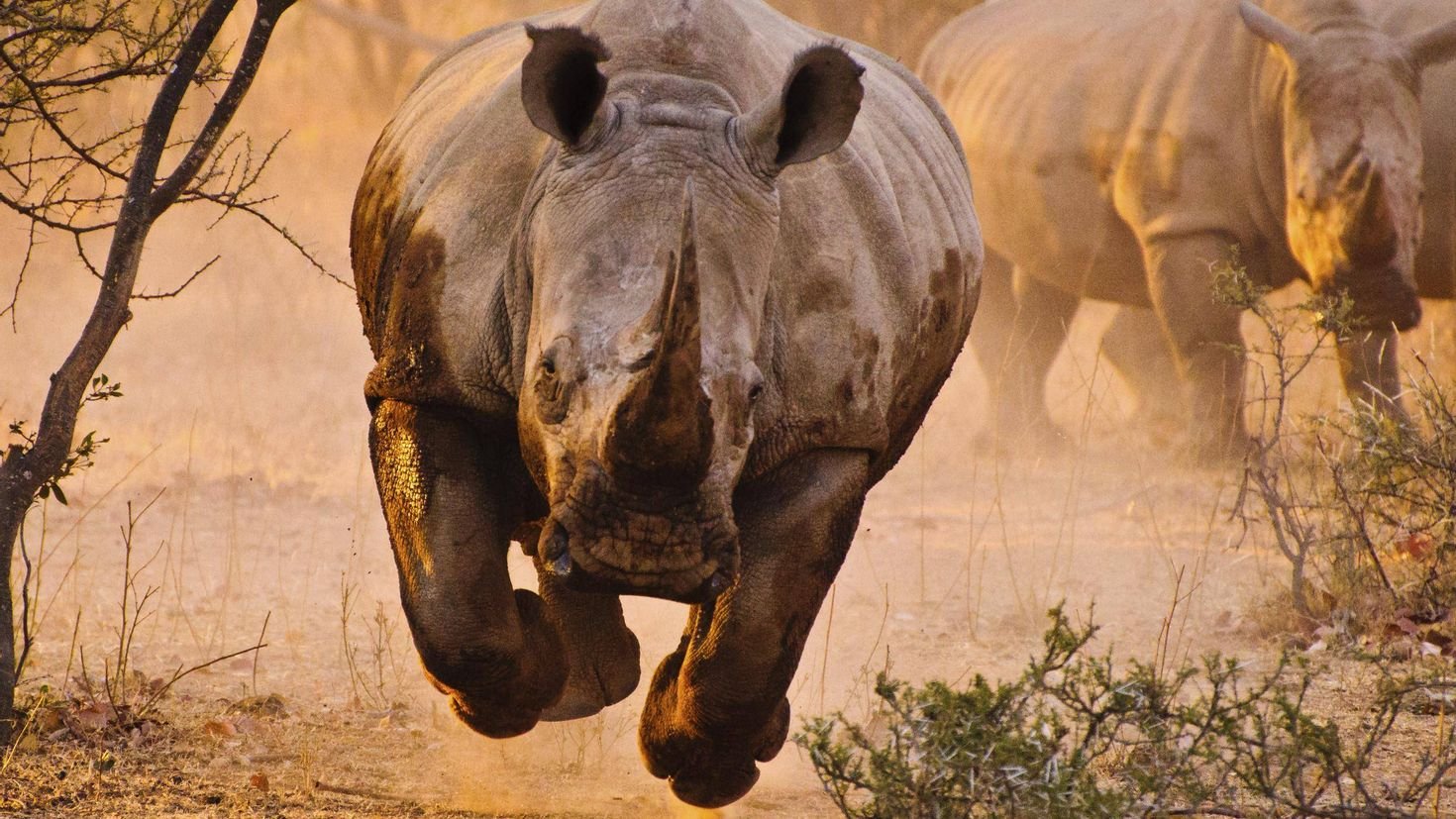 Носорог бежит