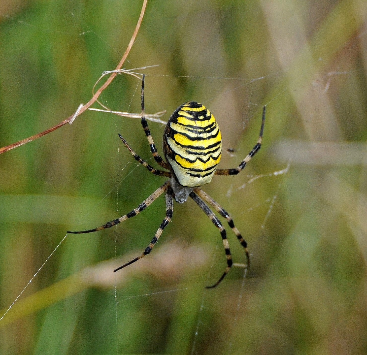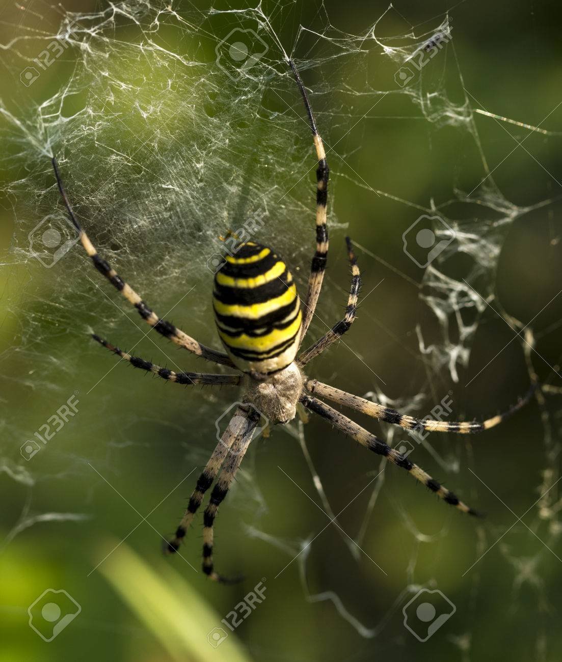 Паук полосатый жёлто-чёрный крестовик