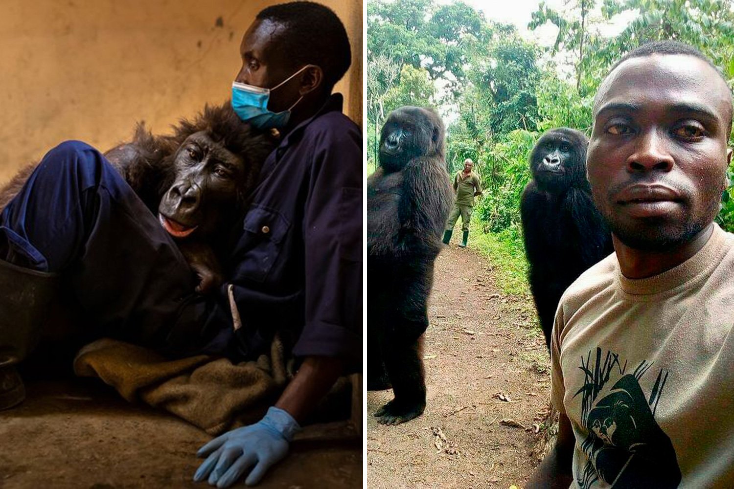 Негр селфи с гориллами