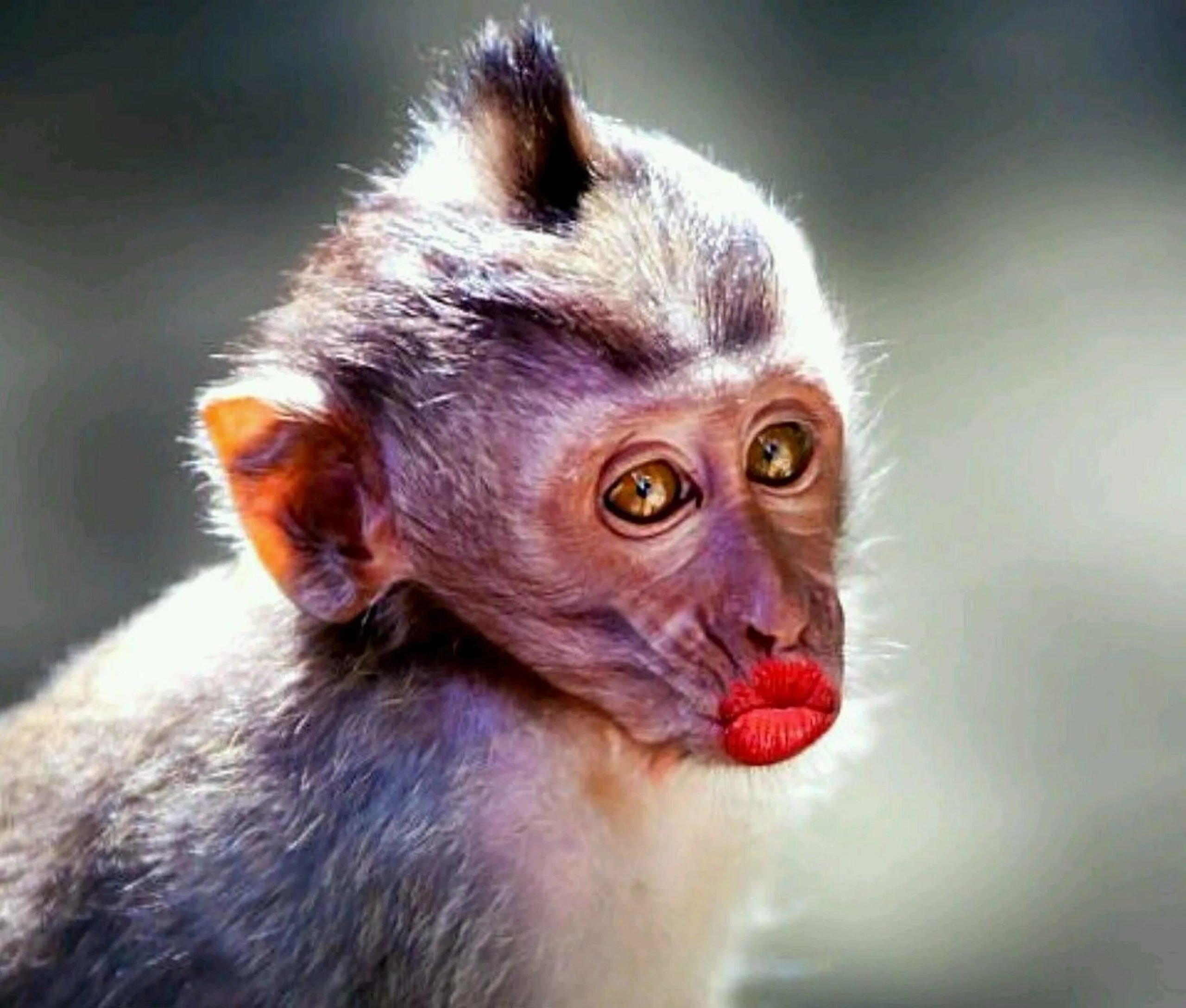 Обезьяна с накрашенными губами