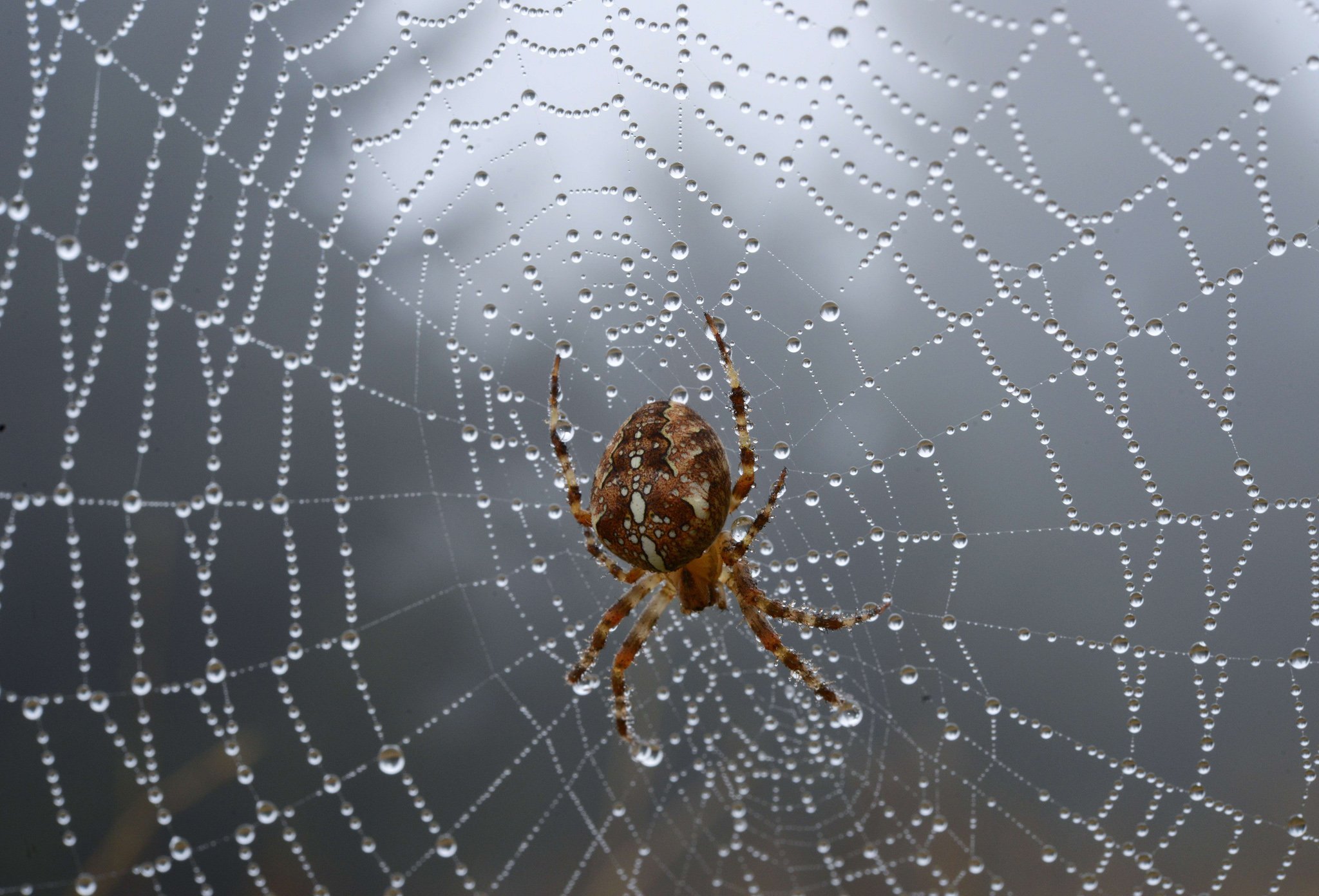 Паук солнце паутина капли