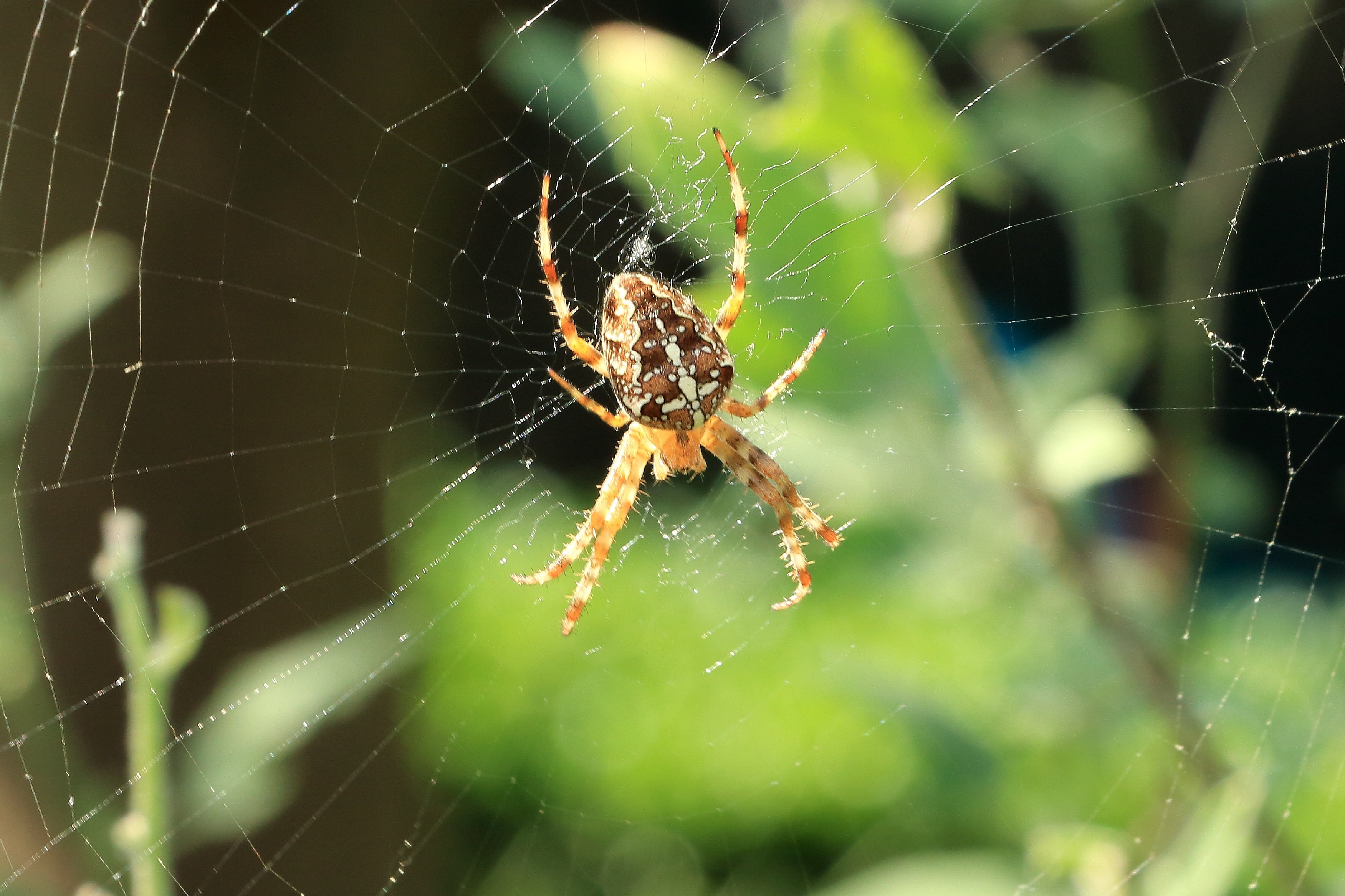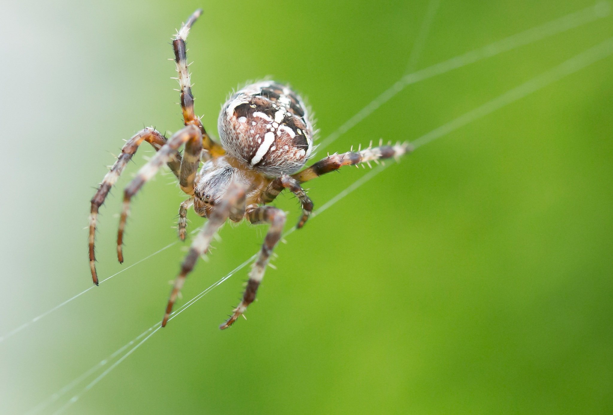 Паук крестовик плетет паутину