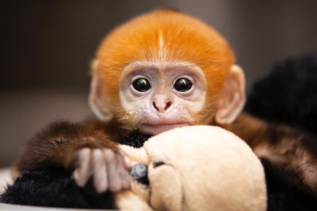 Обезьяна с оранжевой шерстью