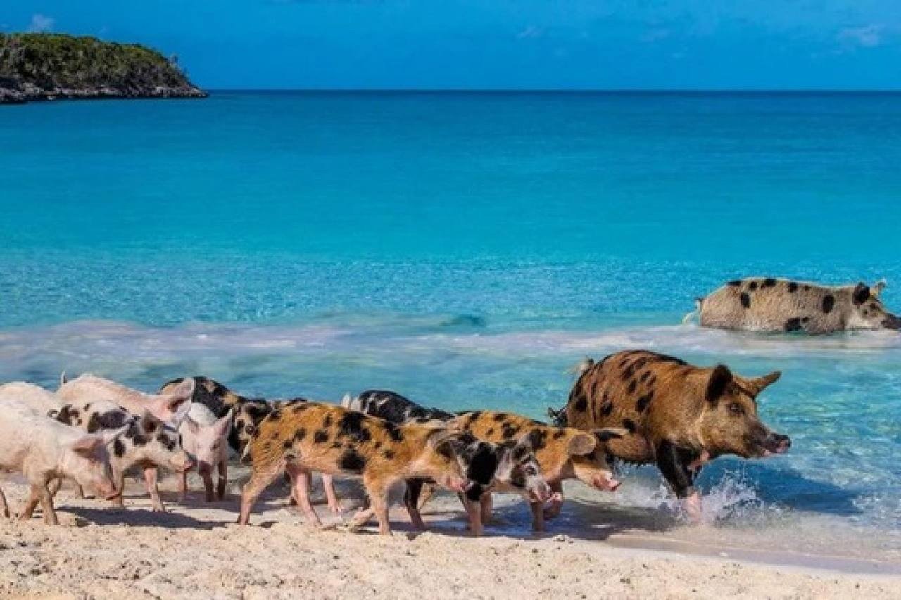Розовые свинки на Багамах