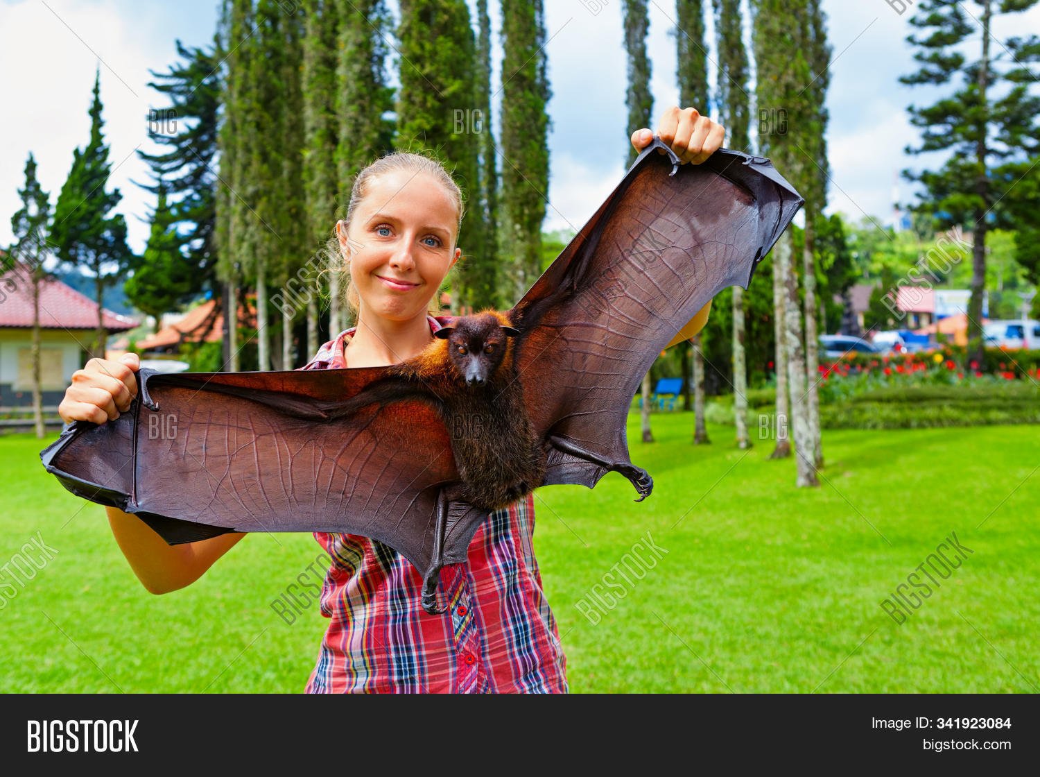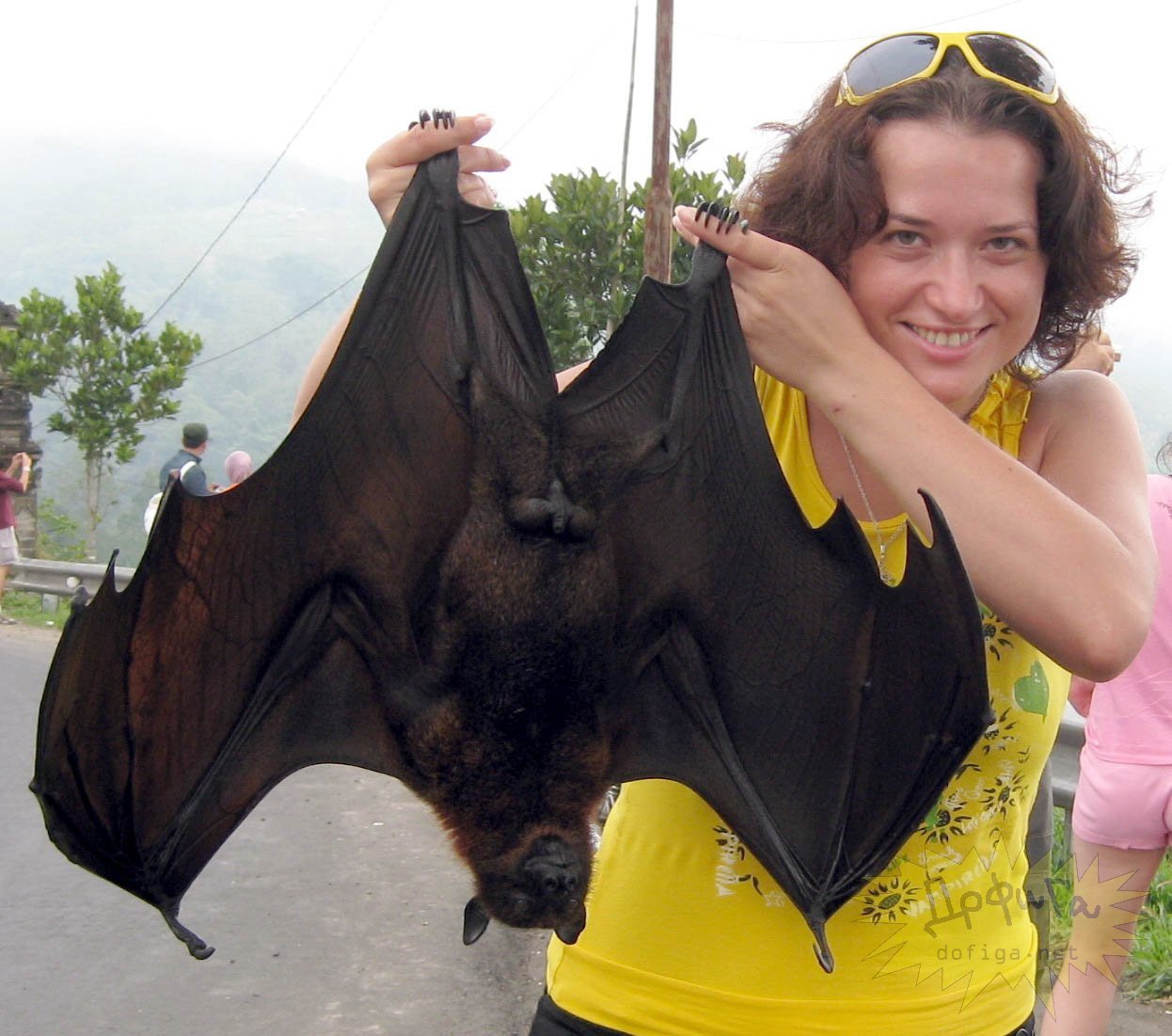 Летучая лисица с человеком