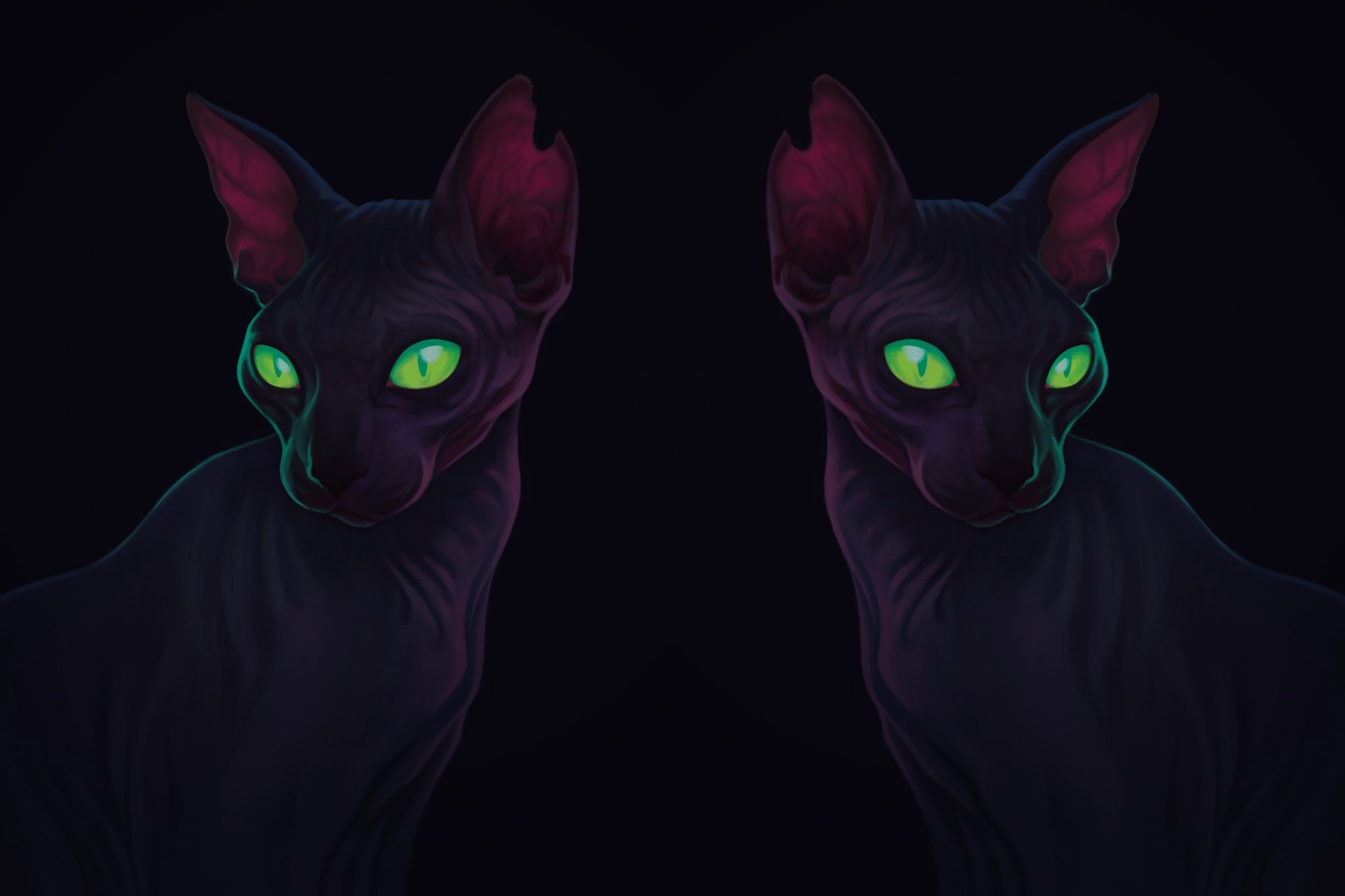 Чёрный кот с зелёными глазами арт