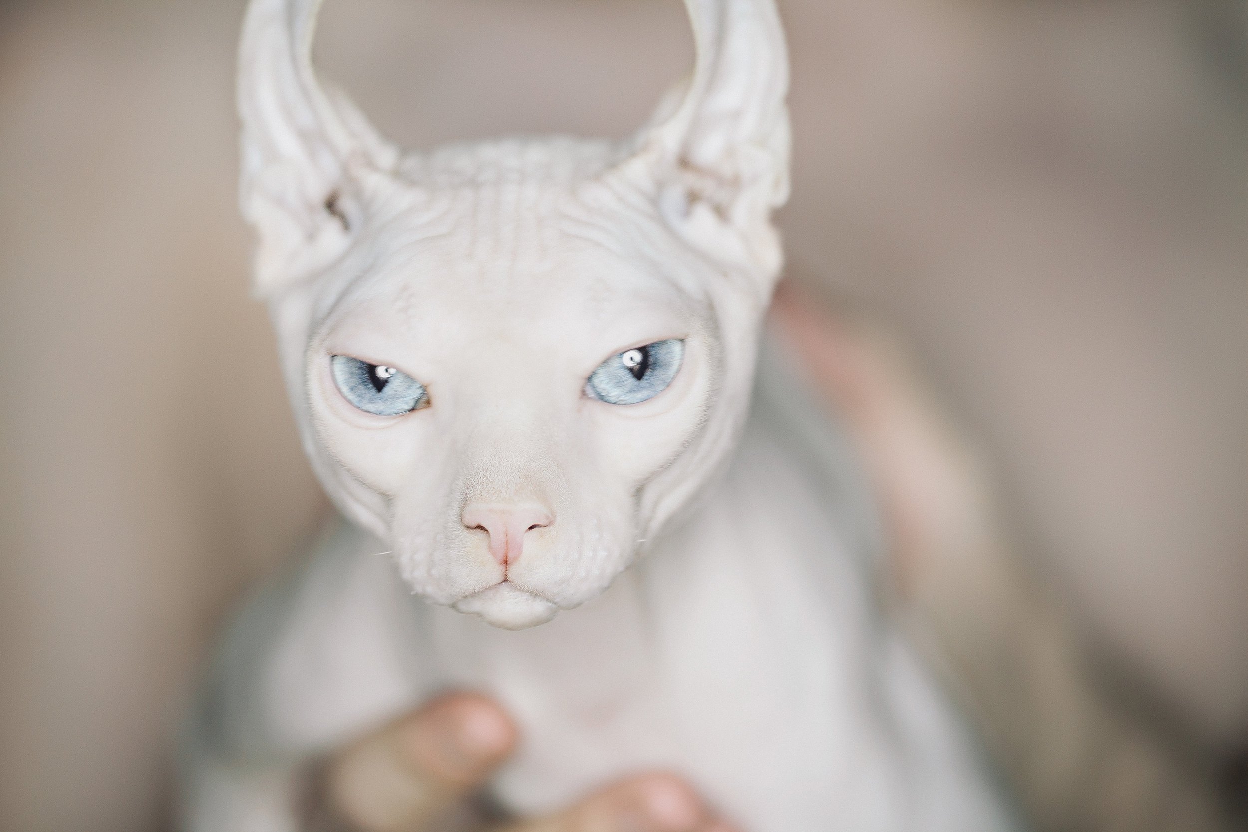 Белый сфинкс с карими глазами
