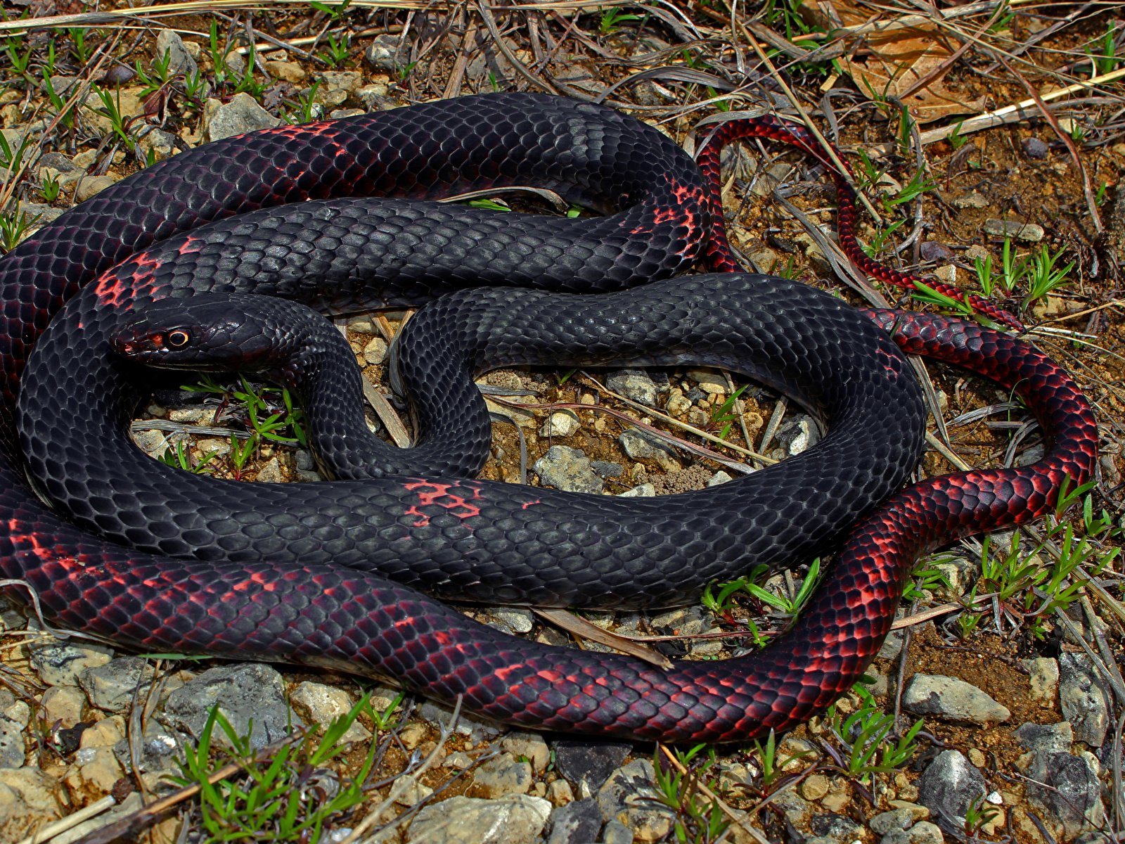 Черная змея с красными глазами