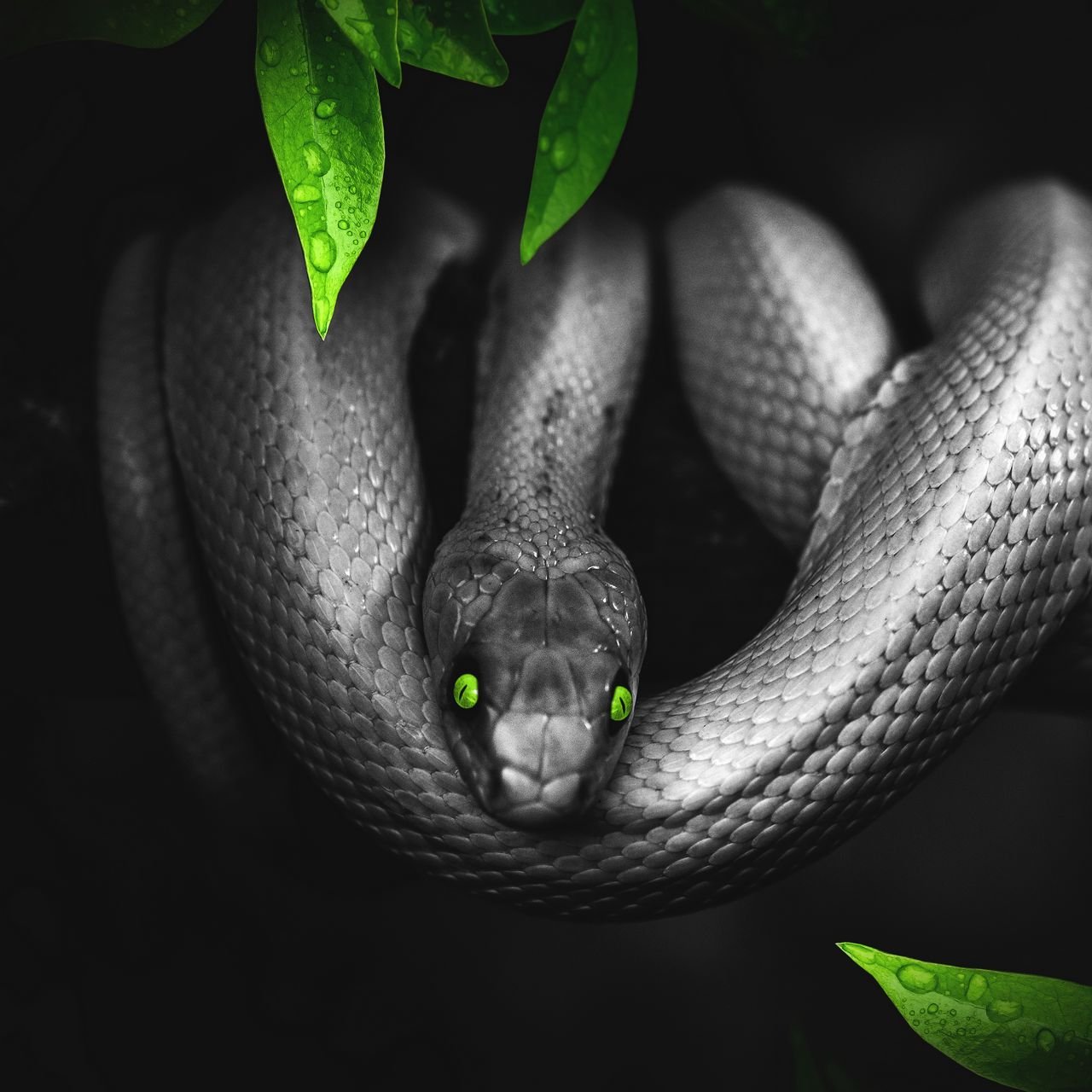 Змея на черном фоне