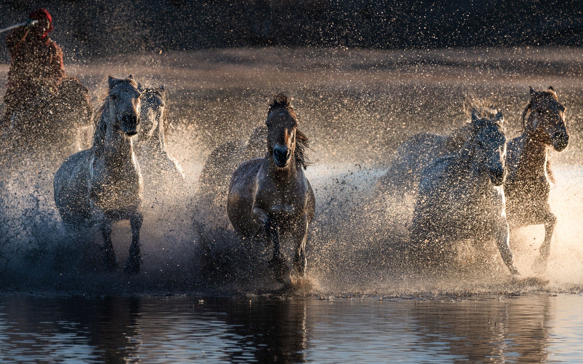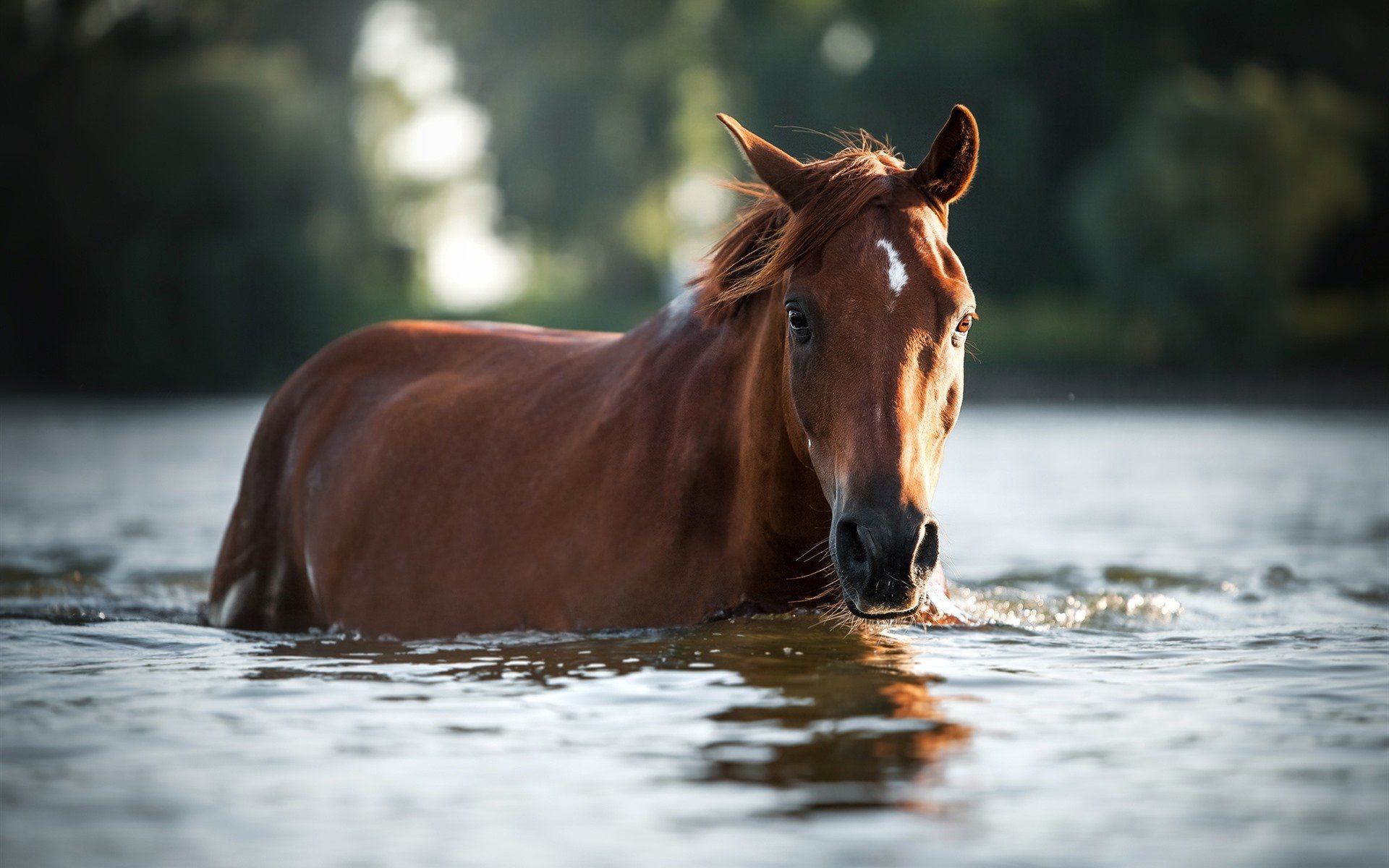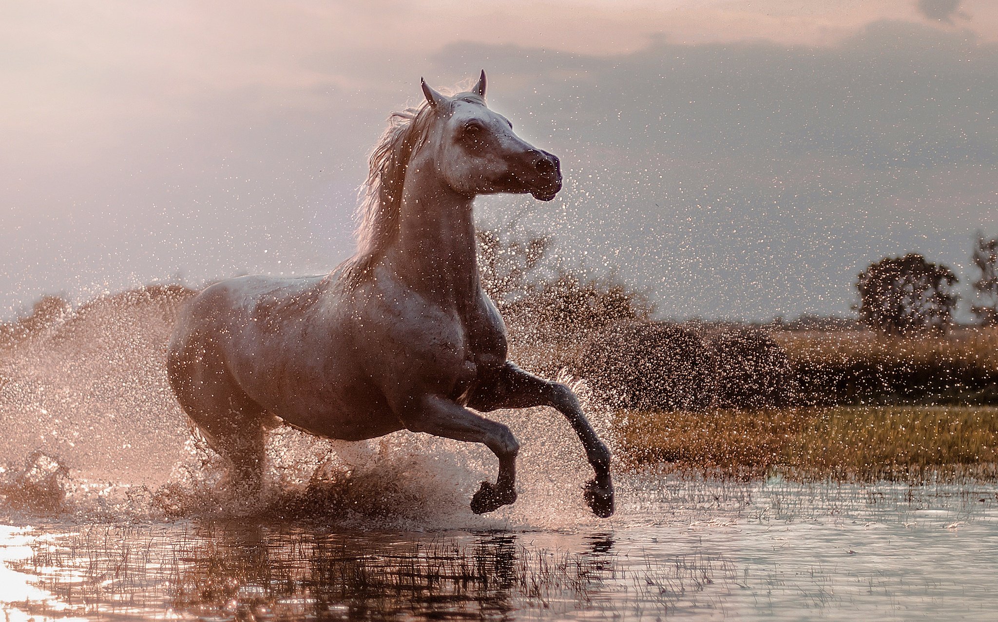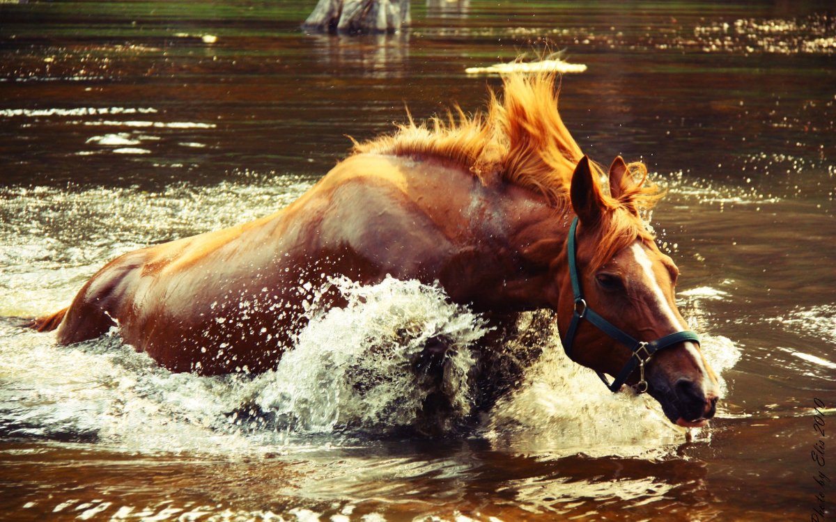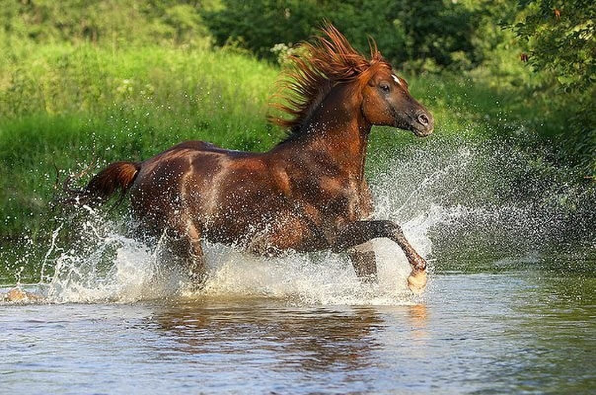 Лошадь бежит по воде