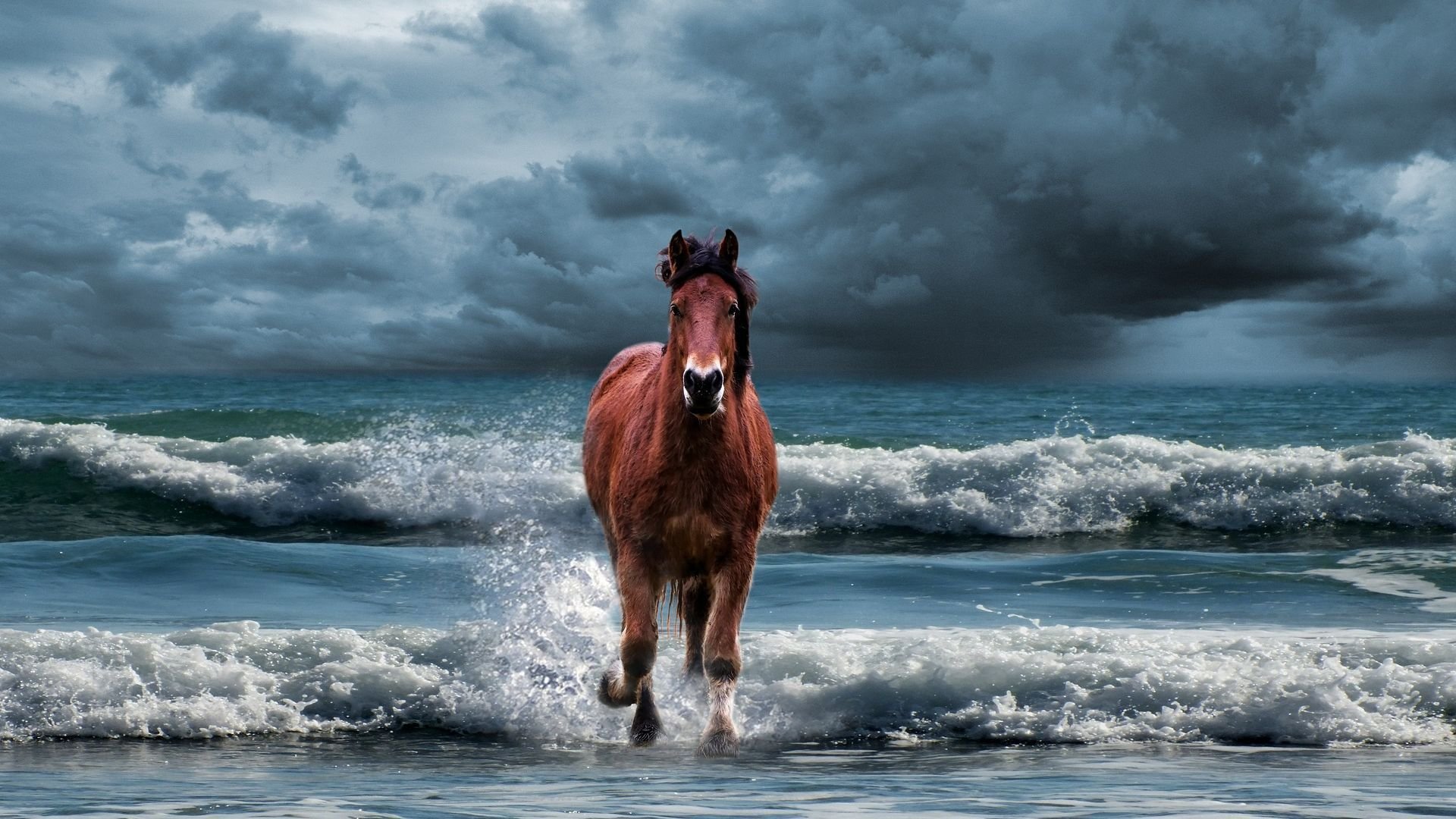 Лошадь бежит по морю