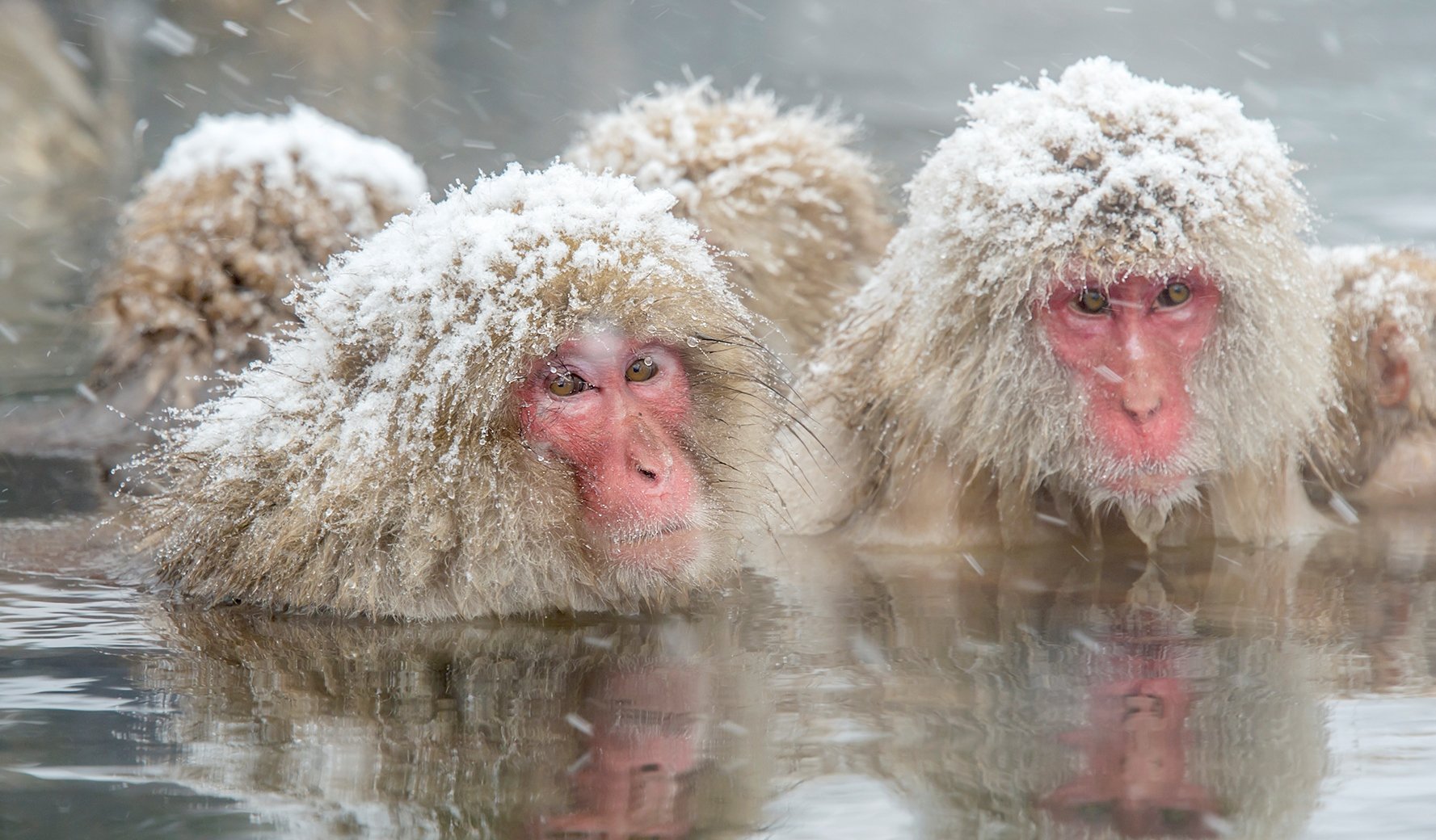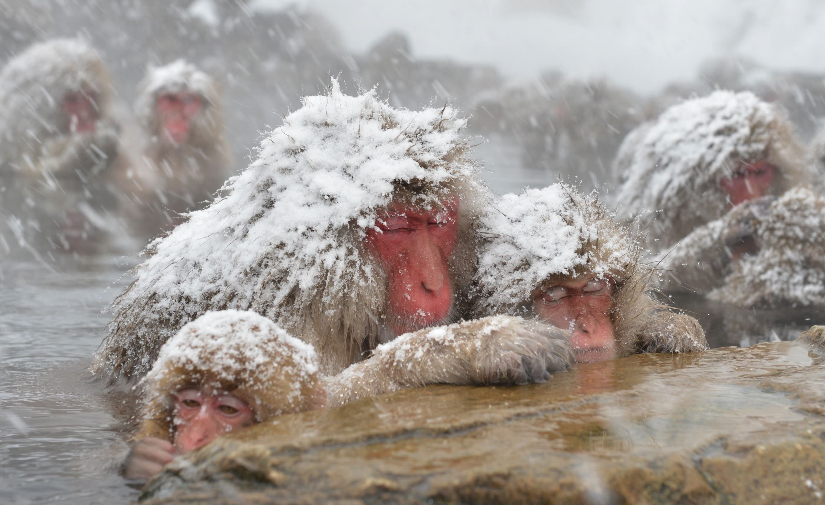 Снежные обезьяны в горячих источниках Нагано