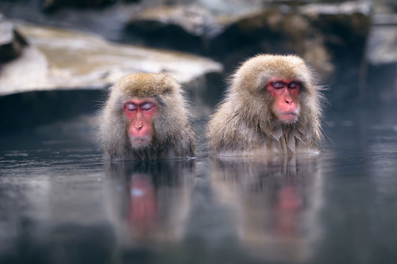 Онсен в Японии с обезьянами