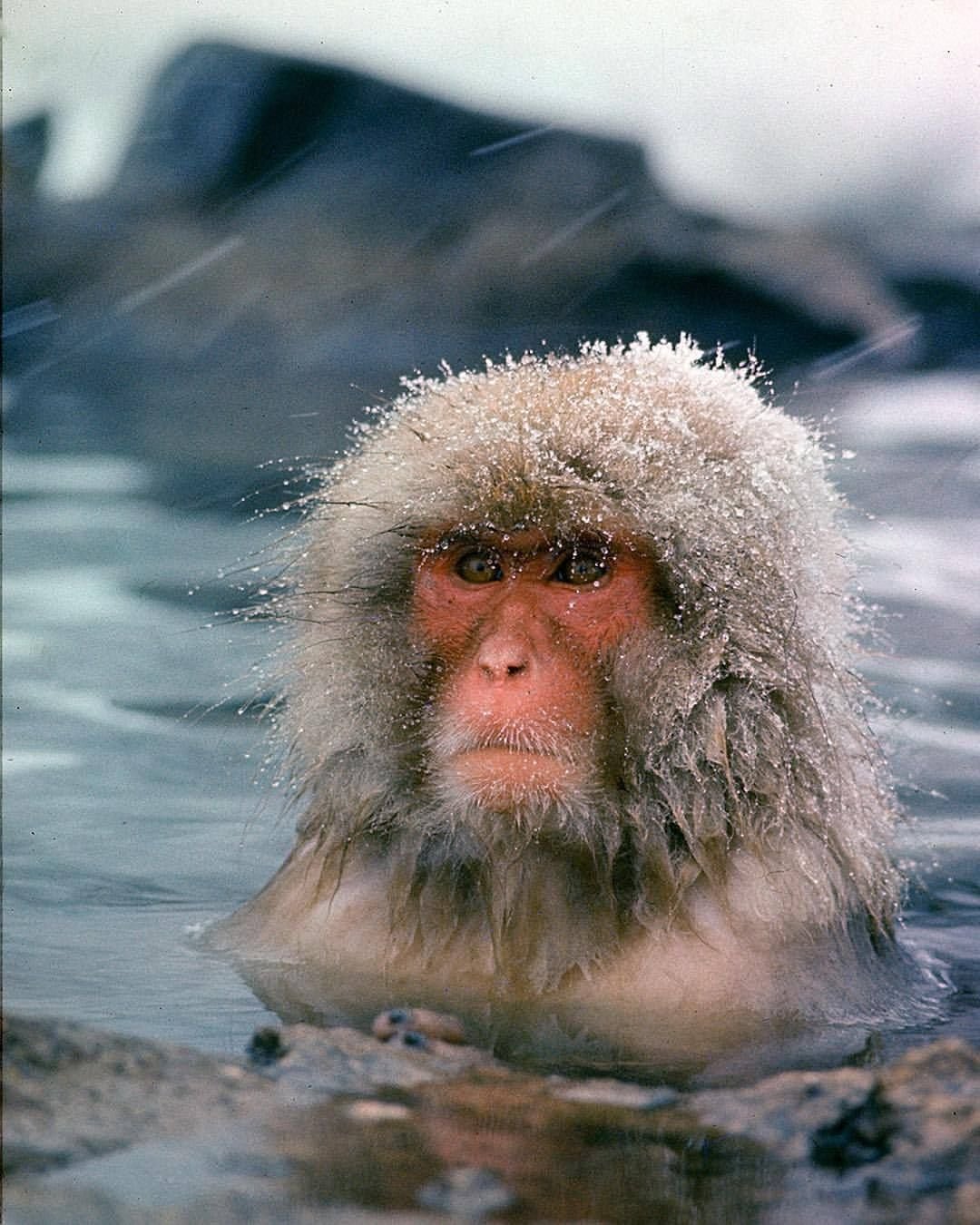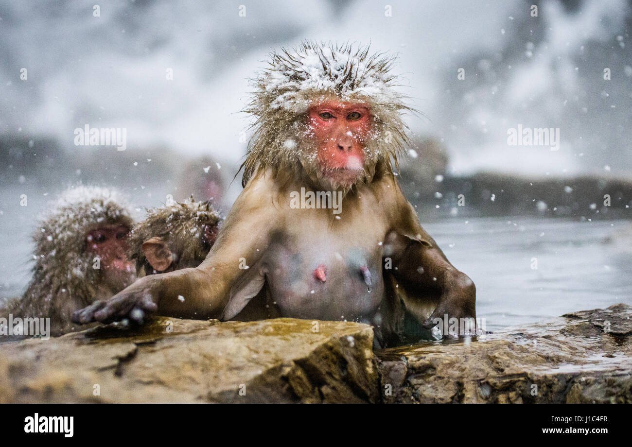 Обезьяна в горячем источнике зимой
