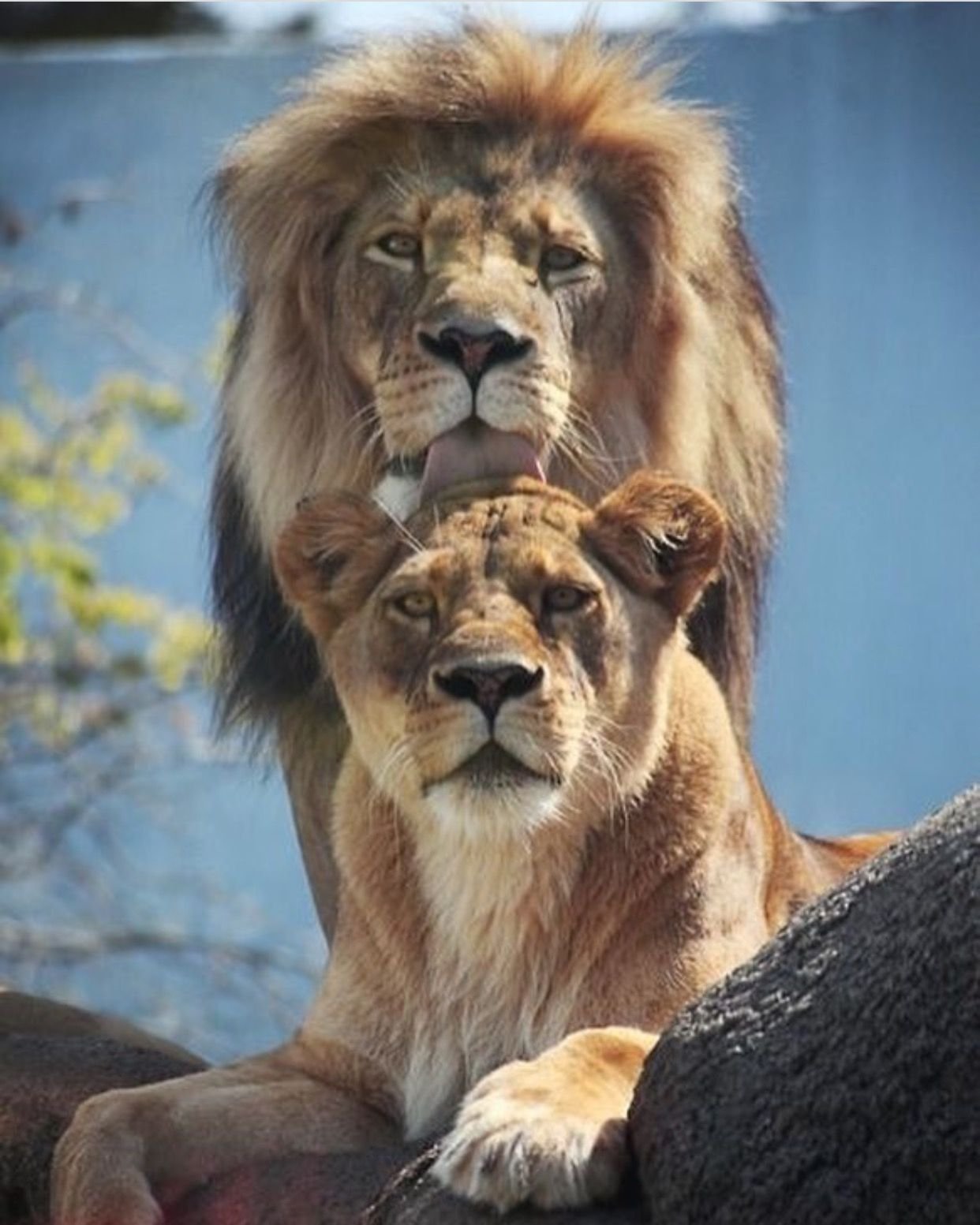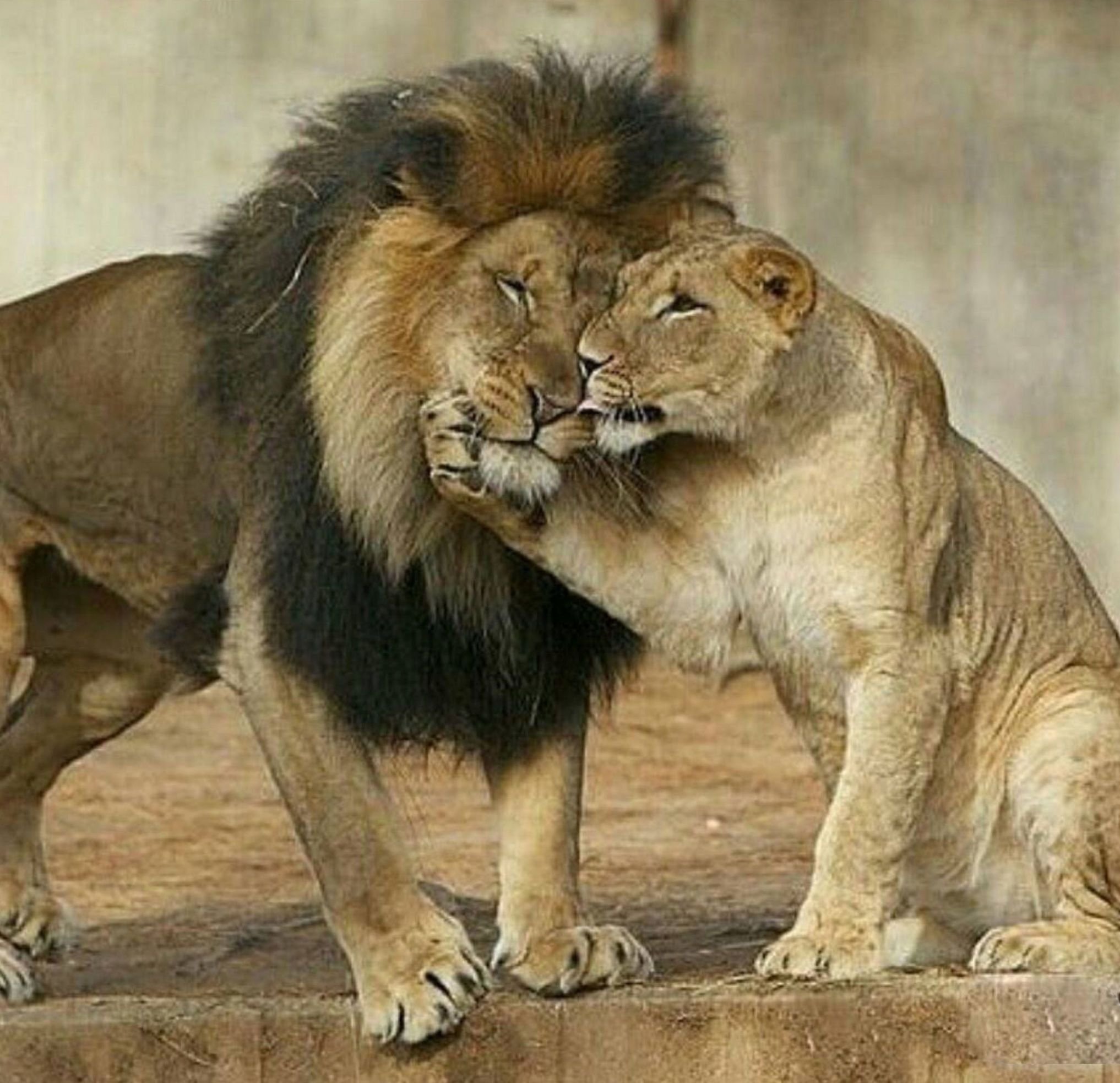 Лев обнимает львицу