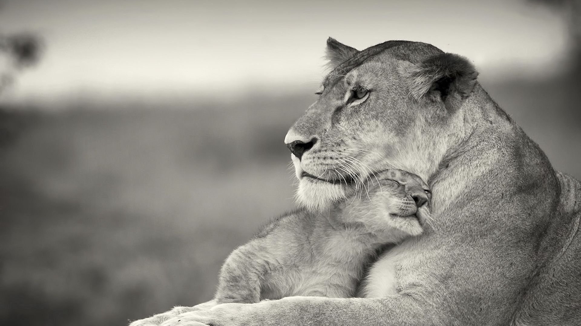 Лев и львица чб