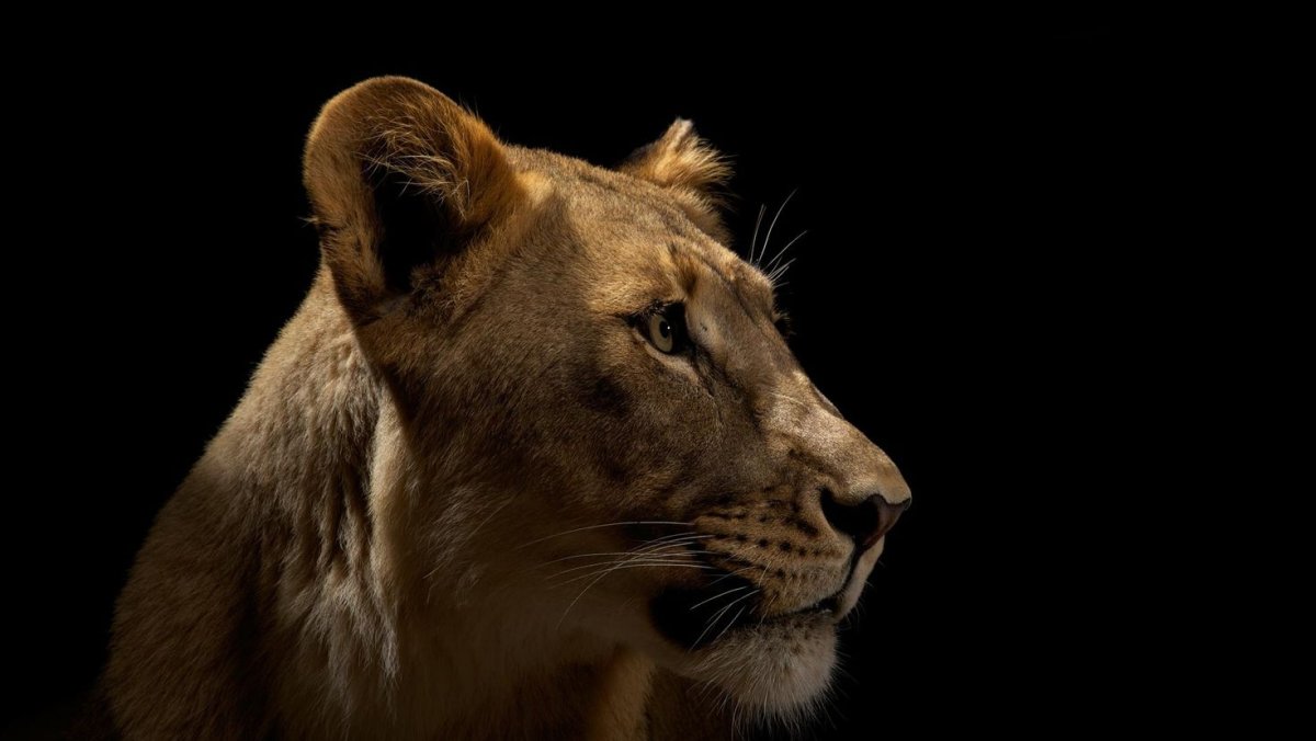 Рычащий Лев на черном фоне