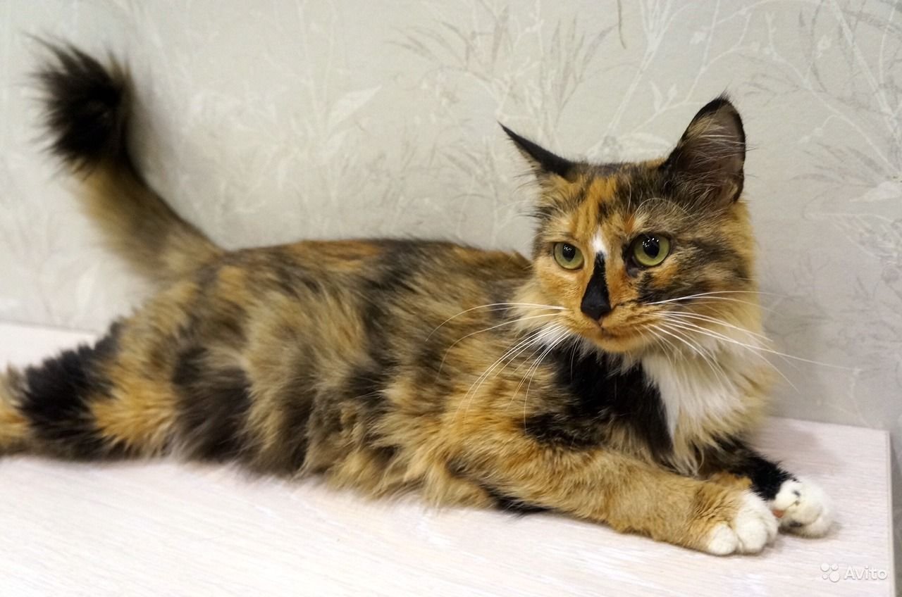 Трёхцветная кошка Мейн кун