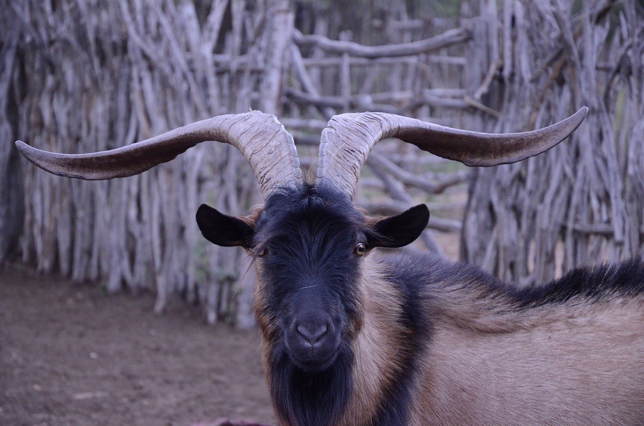 Коза черная с рогами