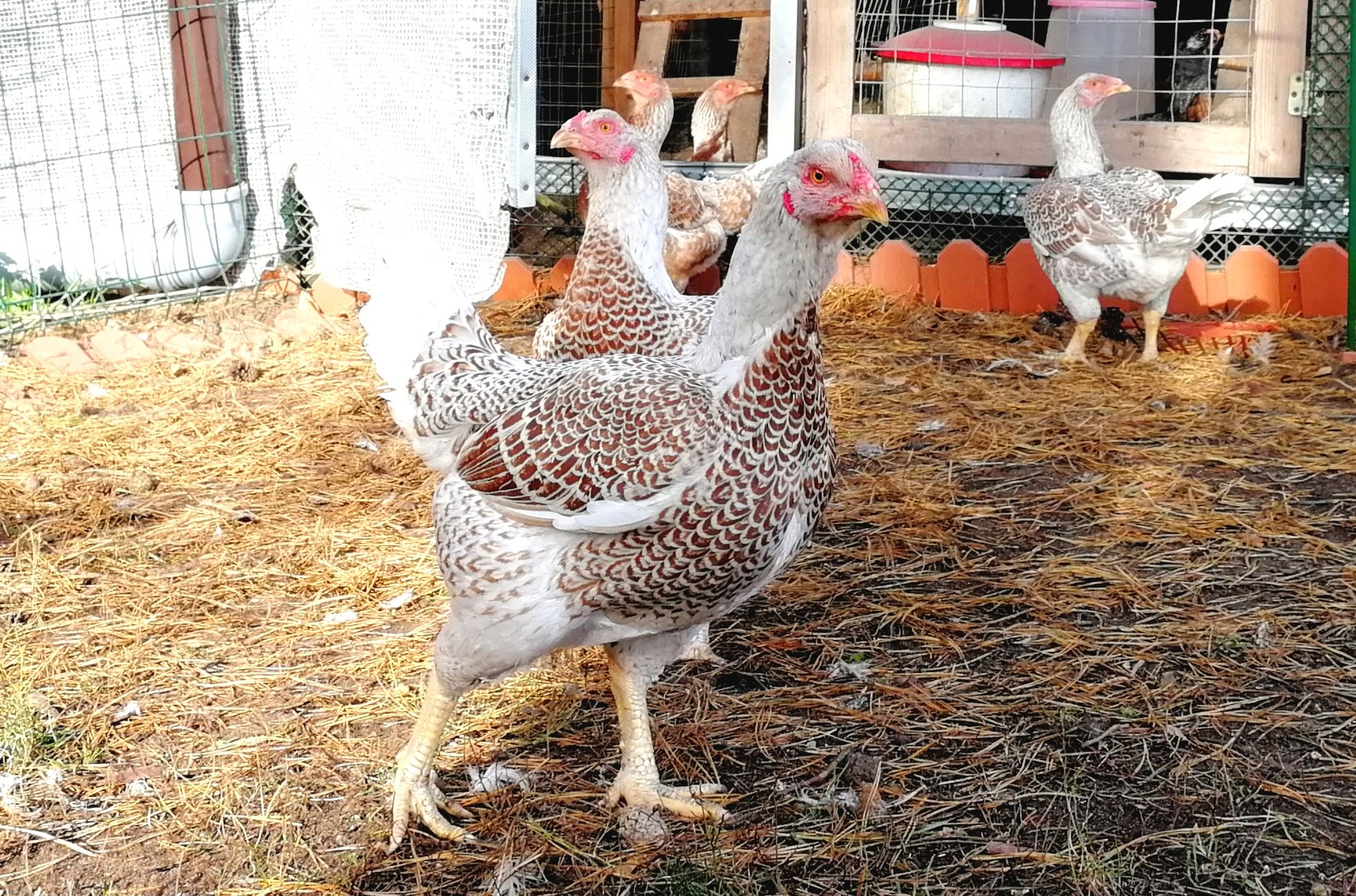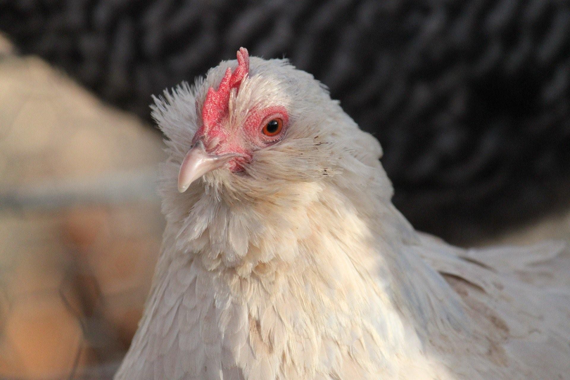 Белая курица с палевыми крыльями