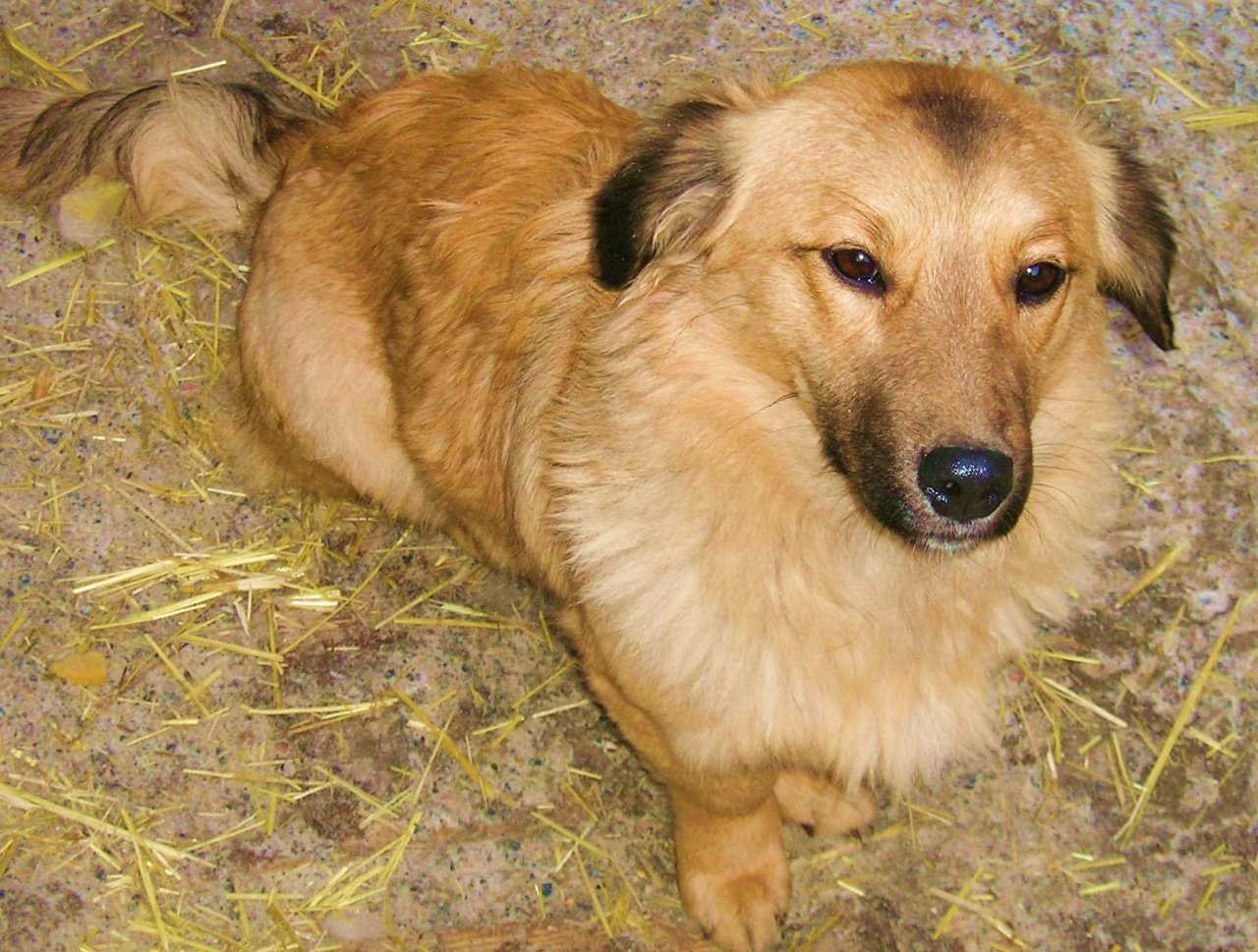 Собака дворняжка кремовая