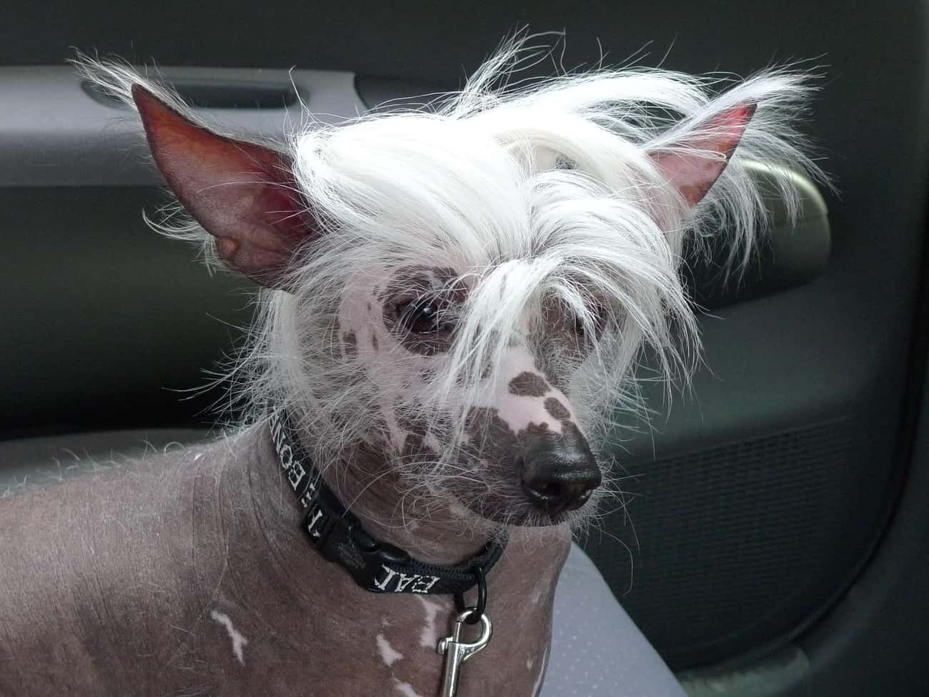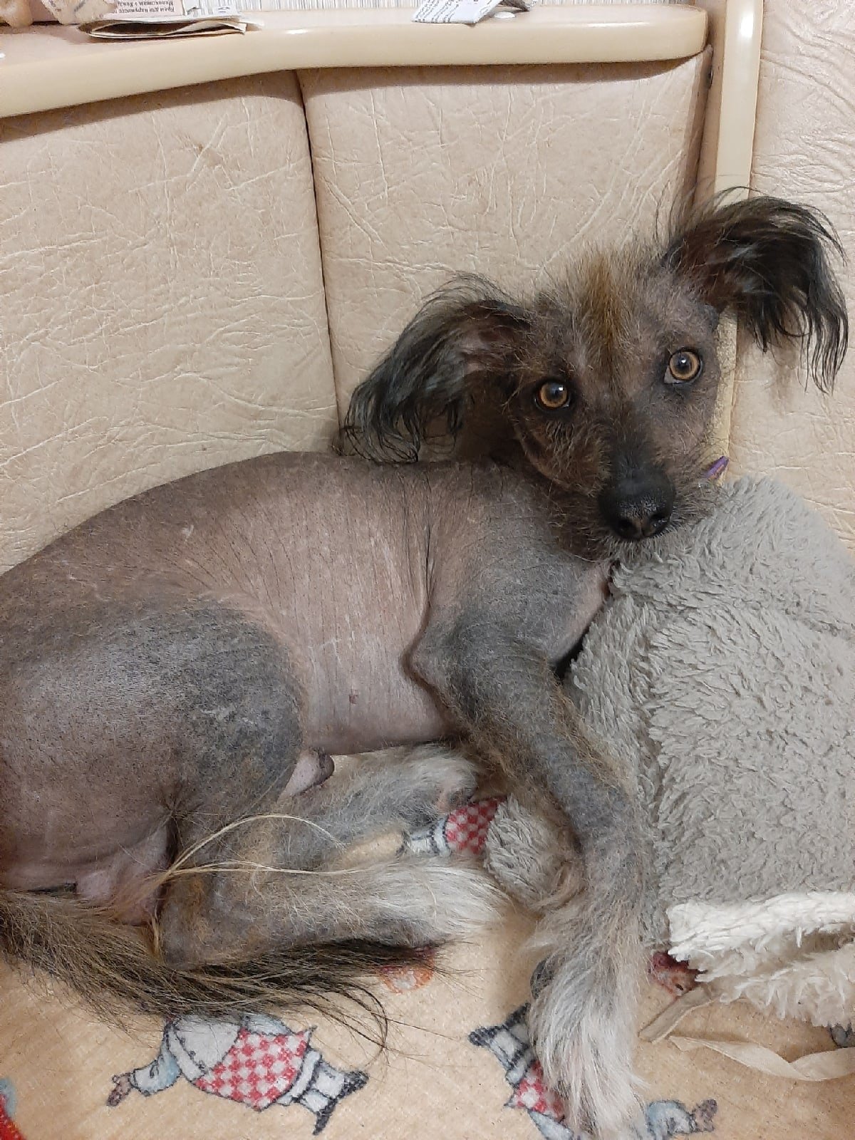 Лысая собака с волосами на голове