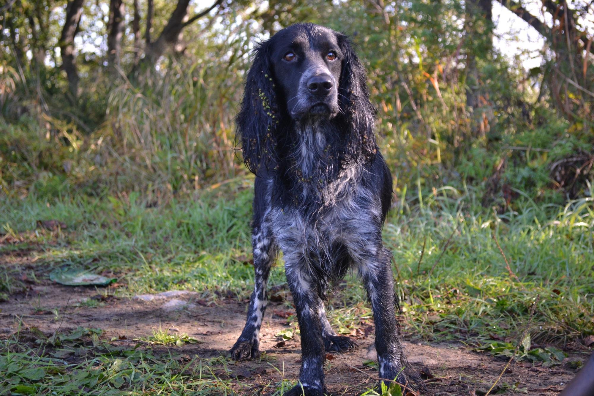 Русский охотничий спаниель чёрный лающий