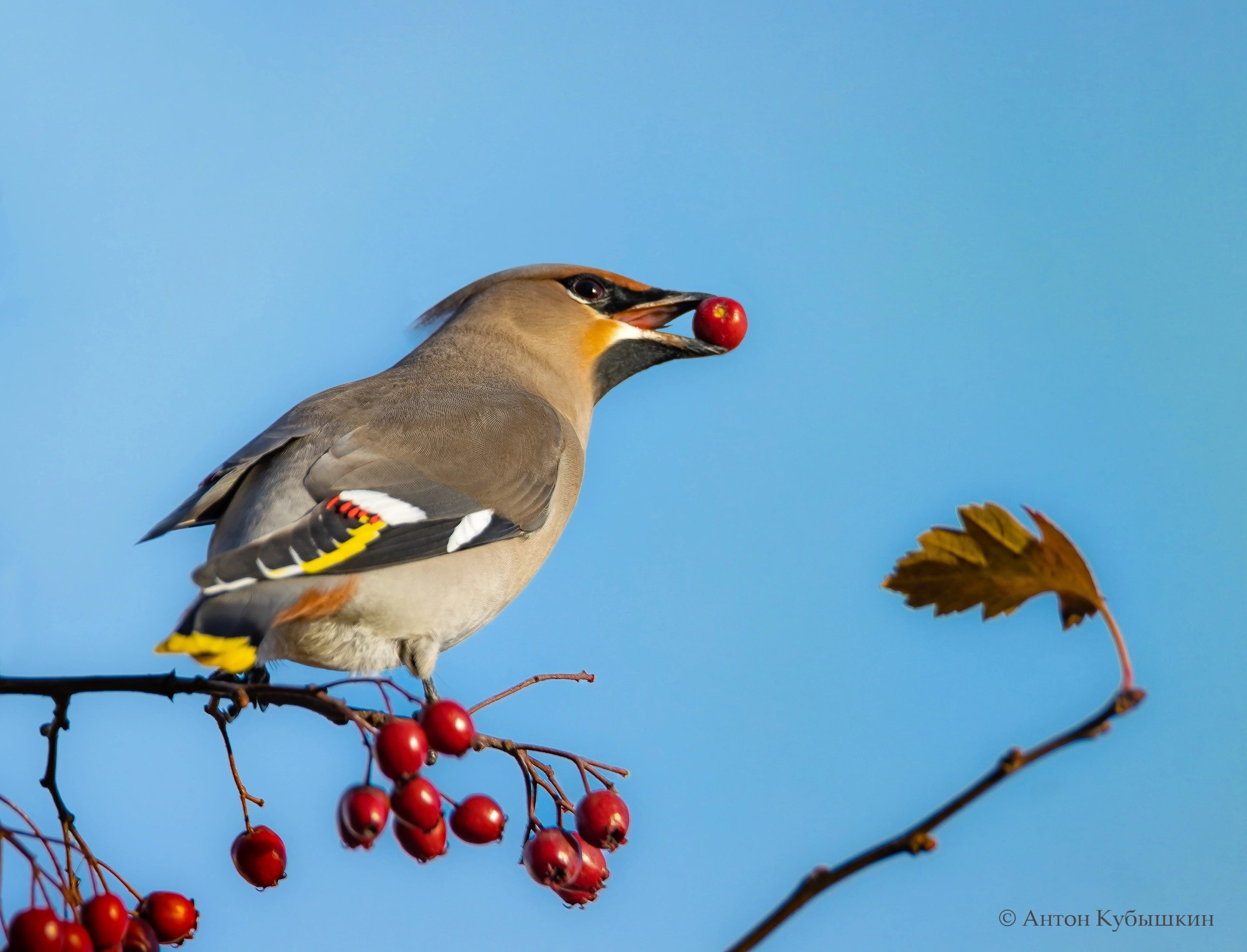 Свиристели в октябре прилетели клевать ягоды боярышника