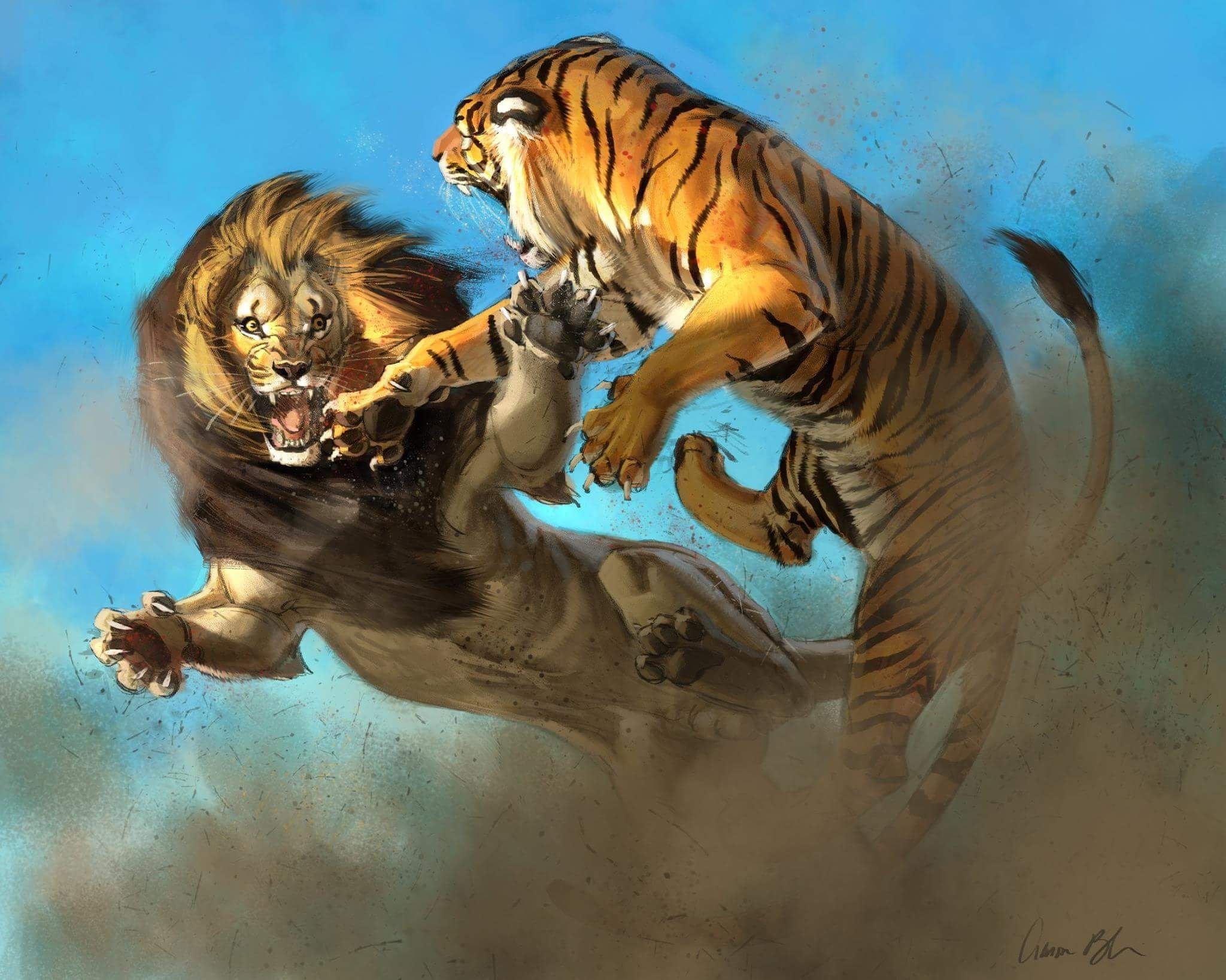Лев против тигра арт